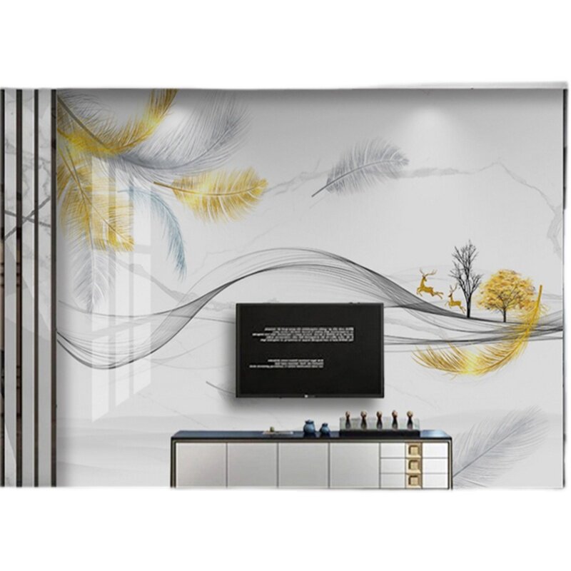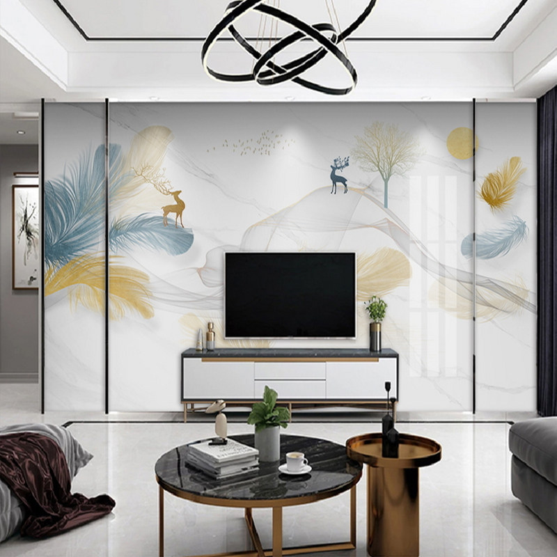 Customized bamboo and wood fiber TV background wall feather minimalist light extravagant living-room sofa bedroom splicing integrated wall panel