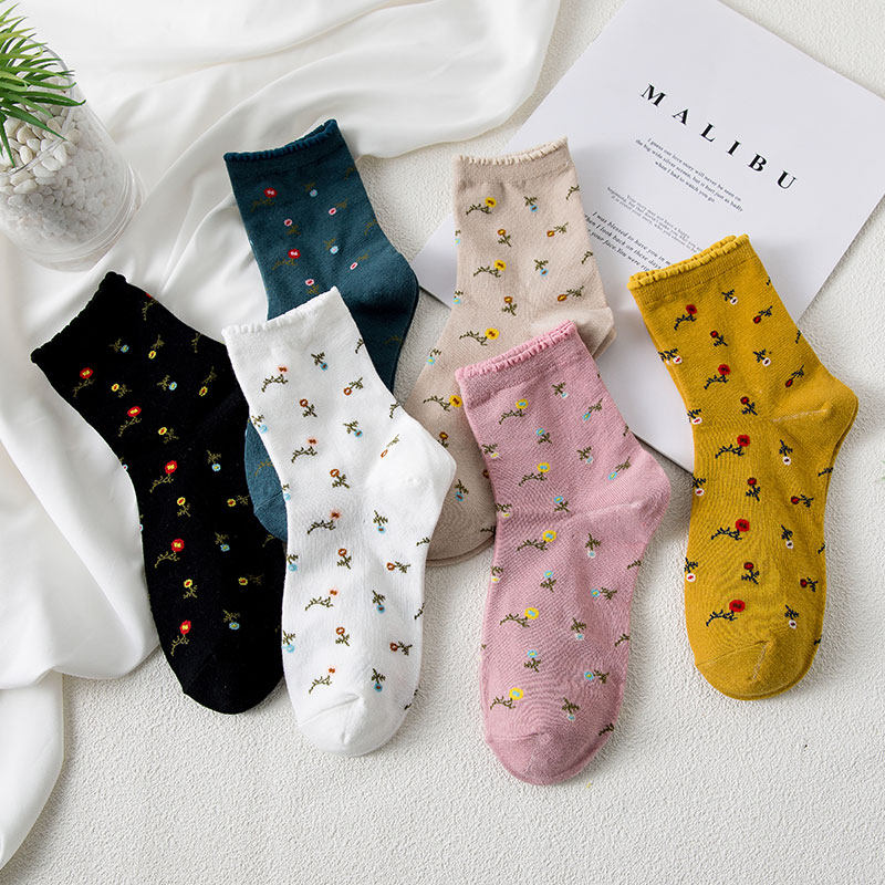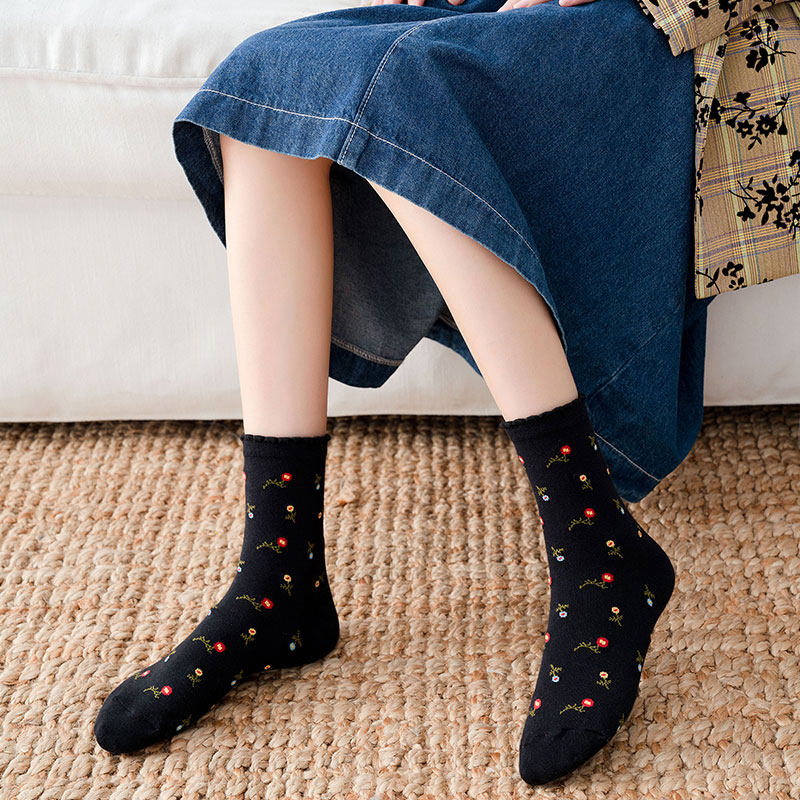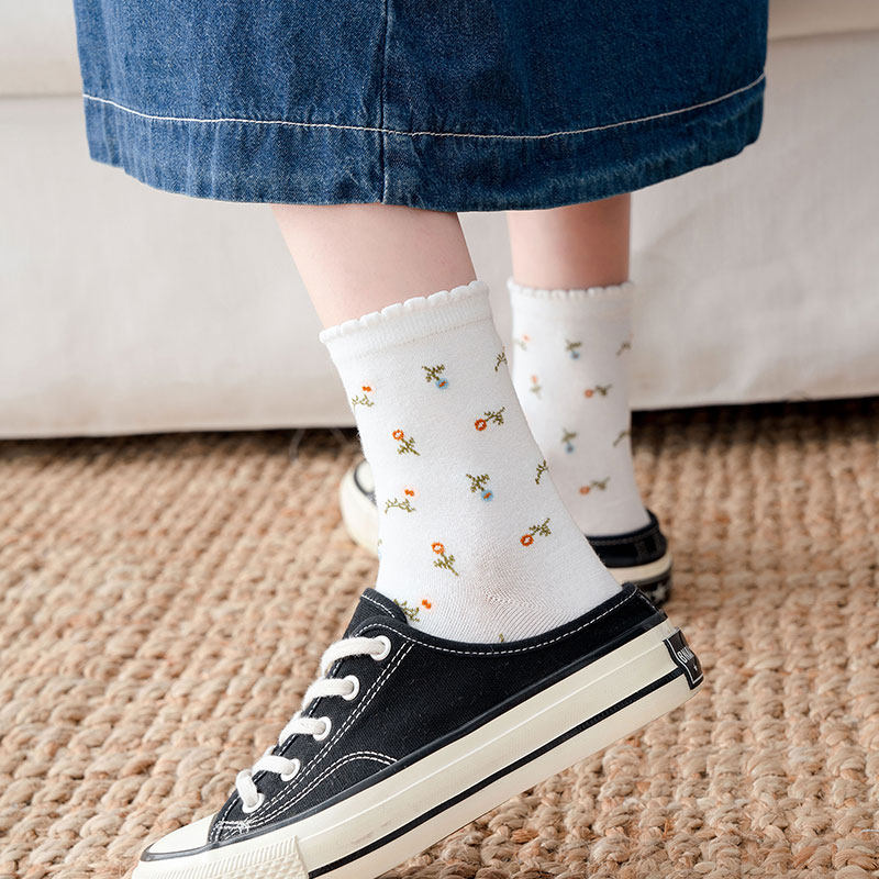 Nut Moms Miday Family Small Broken Flowers Socks Children Spring Autumn Summer Ins Tide Cute Agaric Curl Pure Cotton Medium Socks