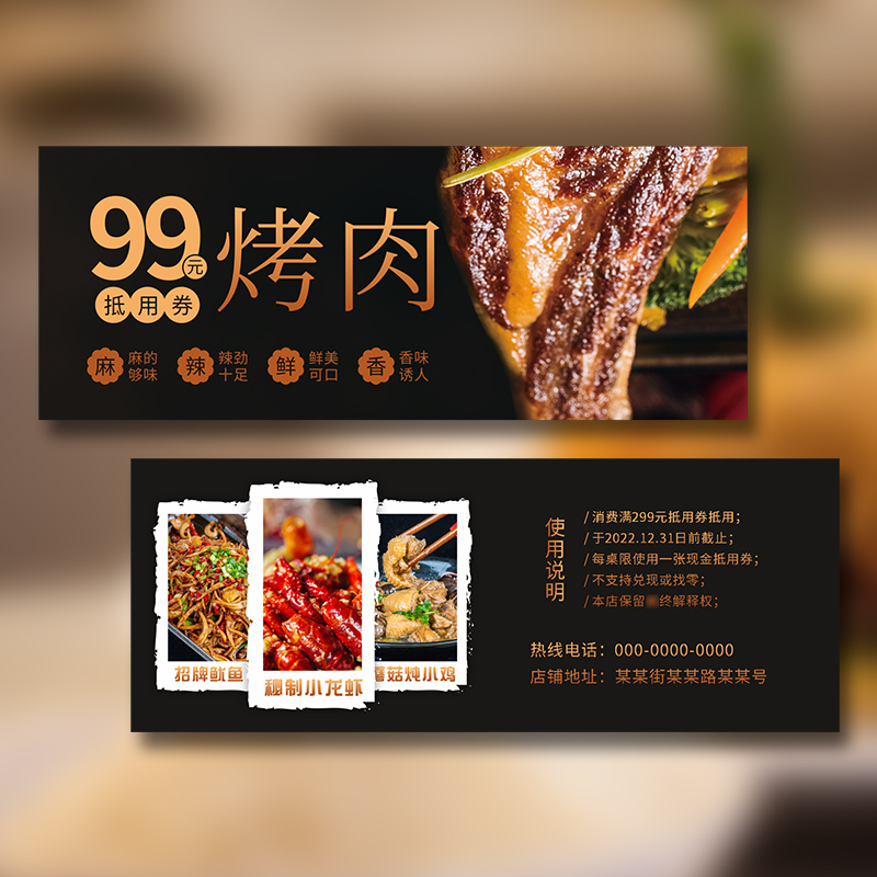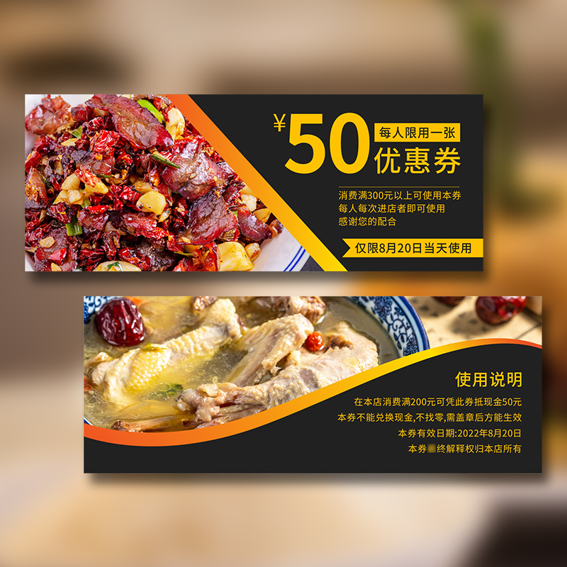 Rui Light Catering Hotel Daikin Voucher Custom Hotpot Barbecue Shop Coupon Design Making Hotel Restaurant Opening Event Publicity Cash Voucher Set Making Vouchers Arrival Vouchers Double Face Print Ordering-Taobao