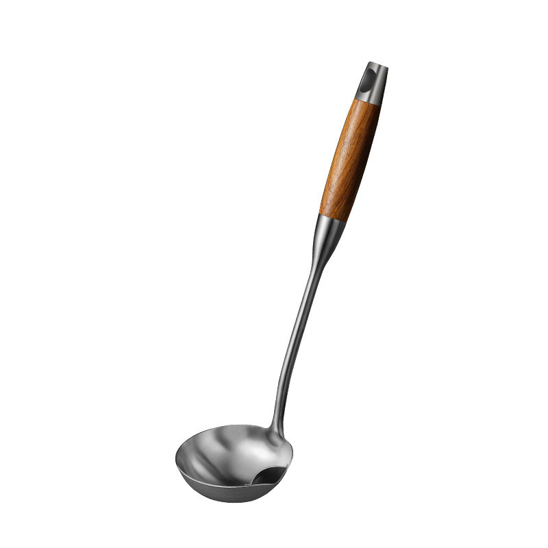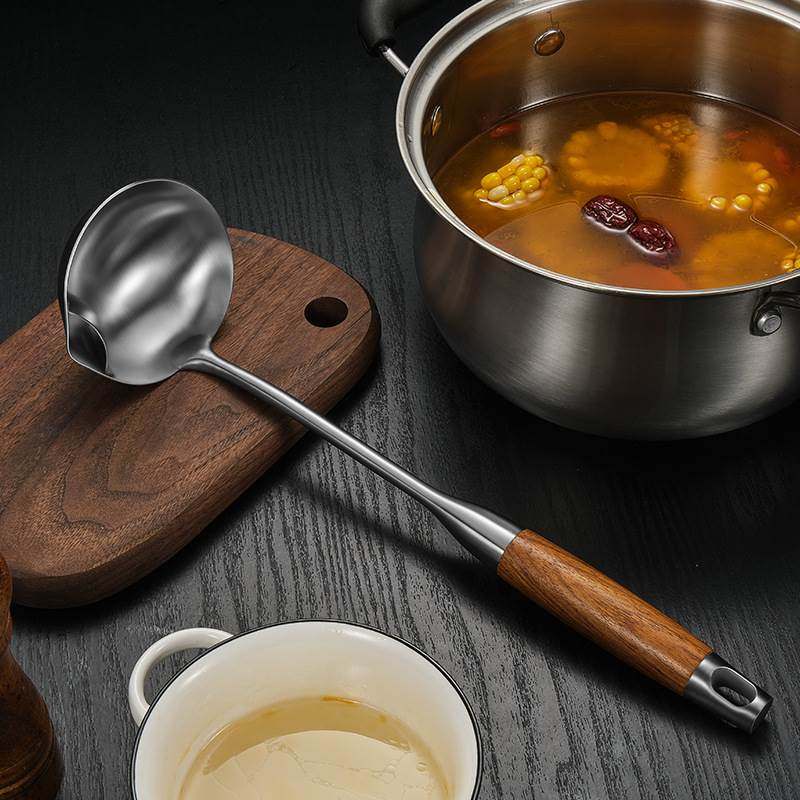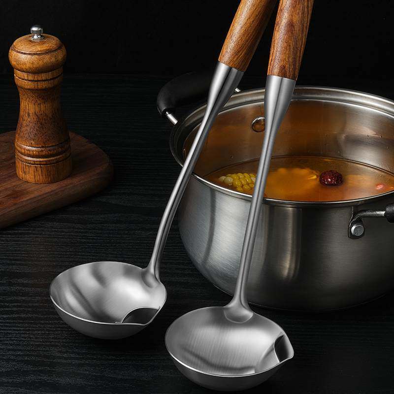 Go to oil soup spoon Grease Stainless Steel oil separating oil Home filter Oil Kitchen Flowers Pear Wood Handle Oil Water Separation Creative Cookware