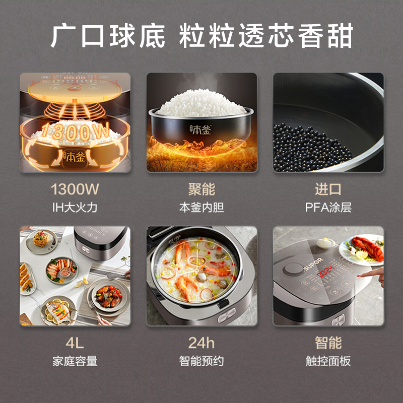 Subpohl Benkettle electric rice cooker home 4L multifunction IH electric cooker Large capacity smart reservation cooking pan-Taobao