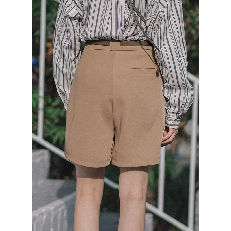 High waist suit 50% pants female casual shorts 2022 black loose sense 100 lap up slim width A pair of pants