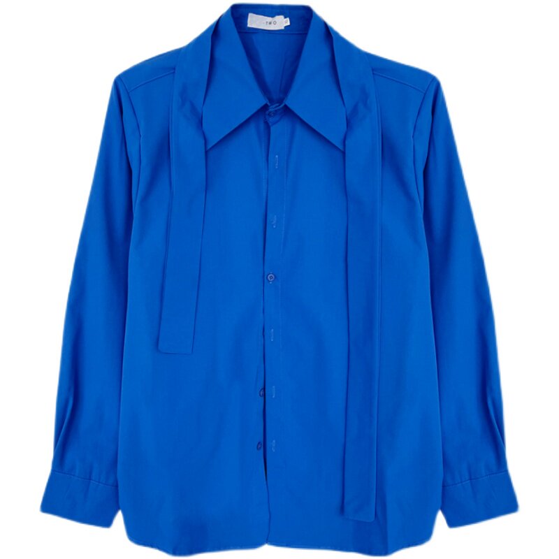 (Love To Wear Help) Tie Decoration Design Sense Long Sleeve Shirt Male Trendy Senior Klein Blue Fried Street Shirt Tide