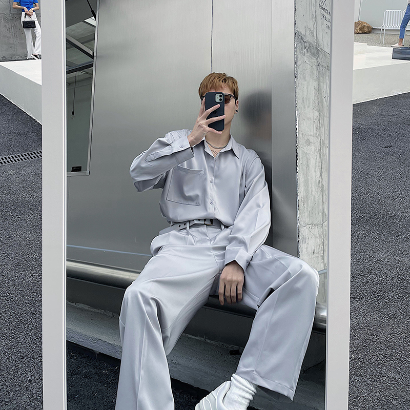 (Love to wear help) Korean style pendant exquisite long-sleeved shirt suit men's high-end abstinence ruffian handsome shirt trend