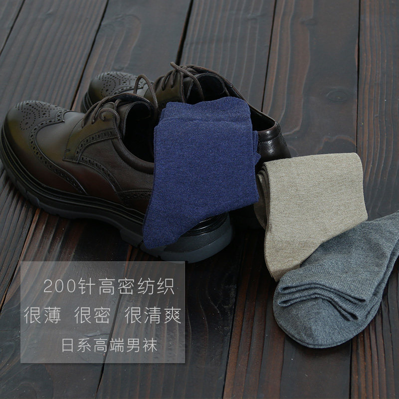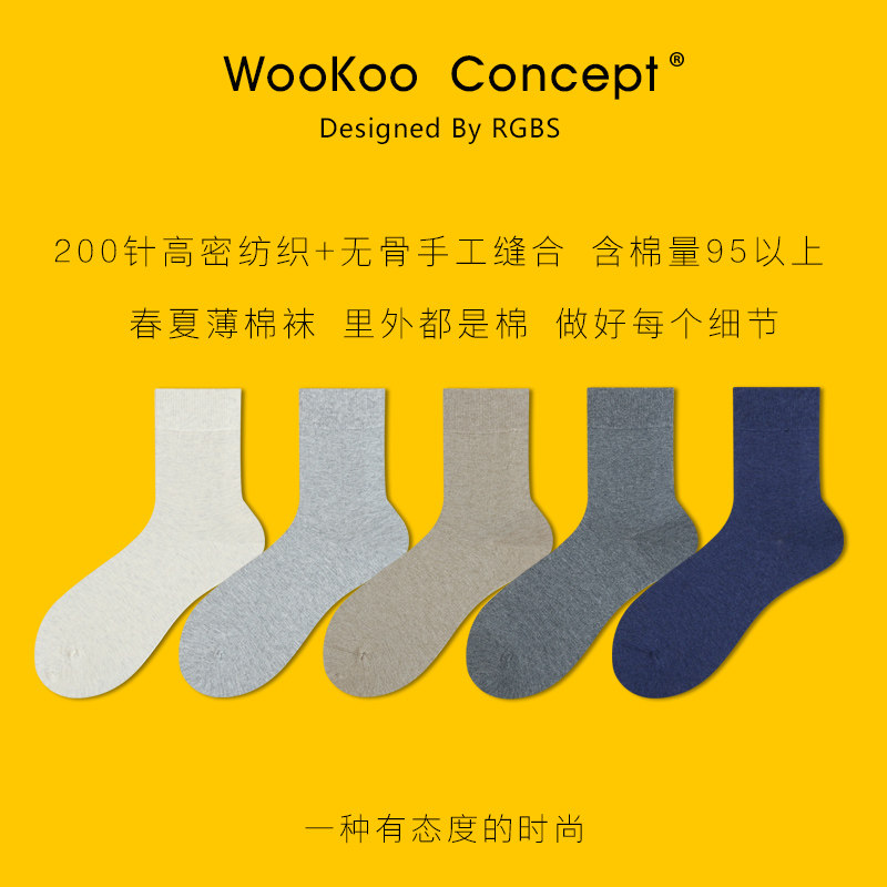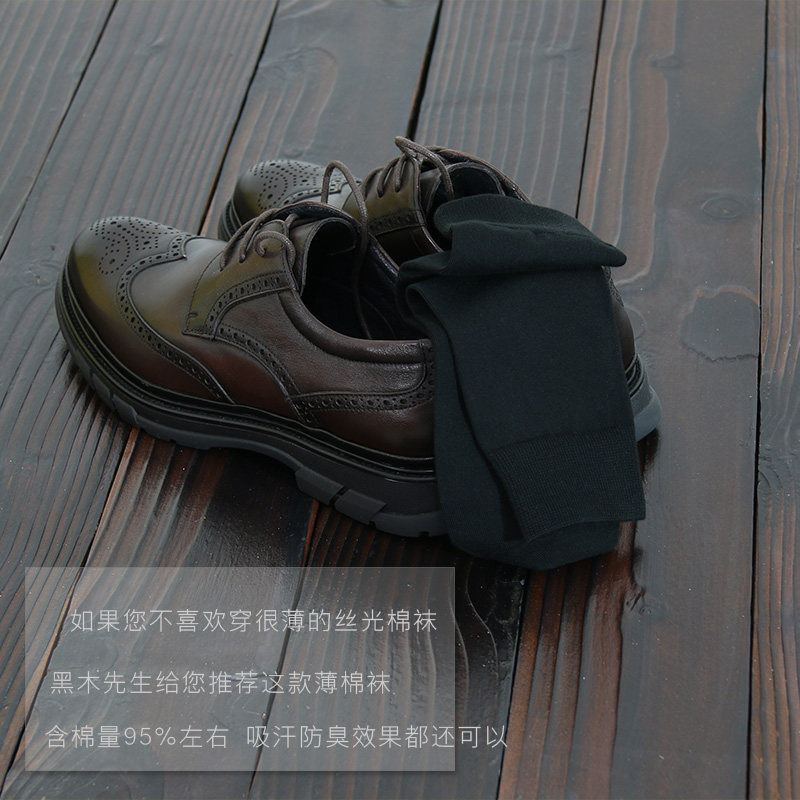 WooKoo black socks men's summer style mid-barrel thin cotton men's summer thin leather shoes long socks sweat breathable simple