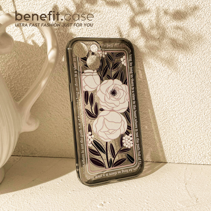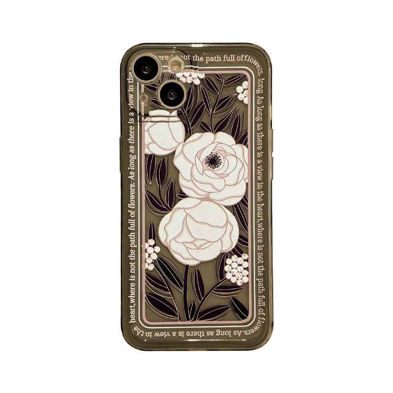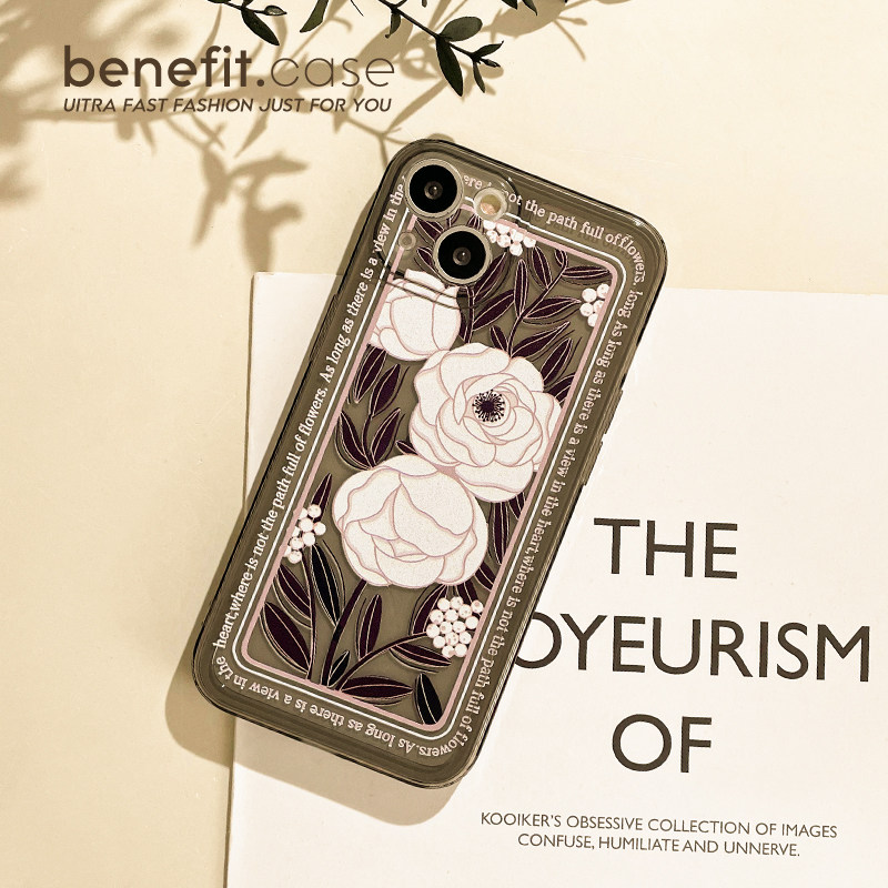 Benefit retro art style tea flowers apply Apple 13promax mobile phone protective shell iphone12 soft silicone gel