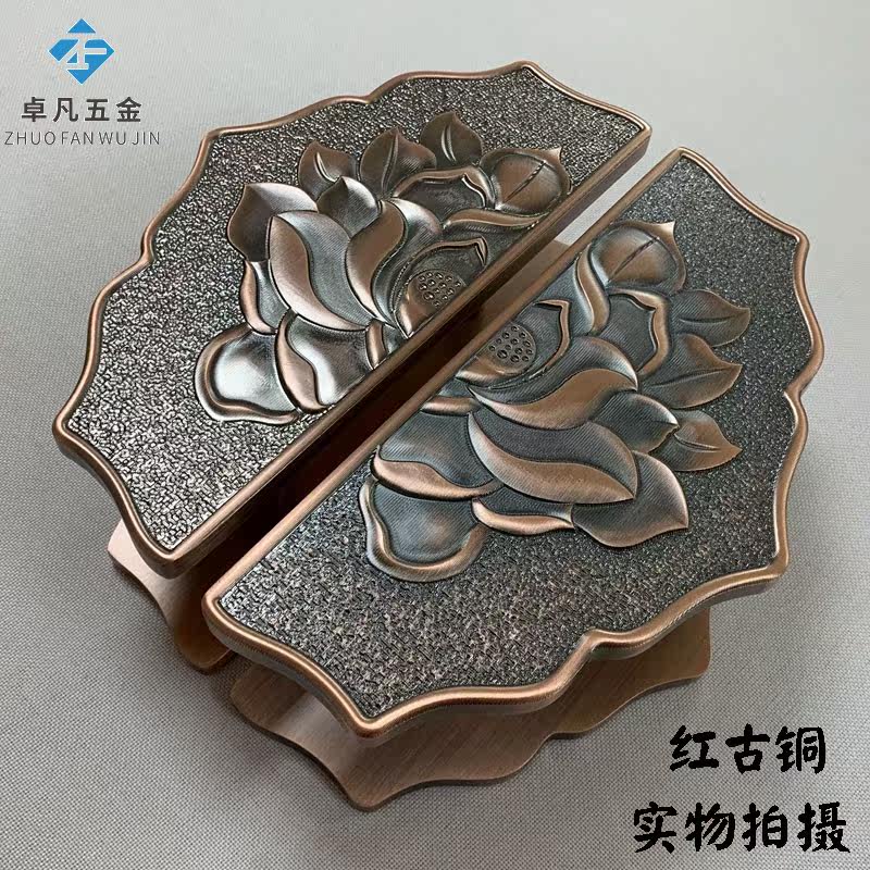 Glass door handle Chinese imitation ancient lotus flower semicircle with frame door Ramen Lucky Yungu bronze box door handle