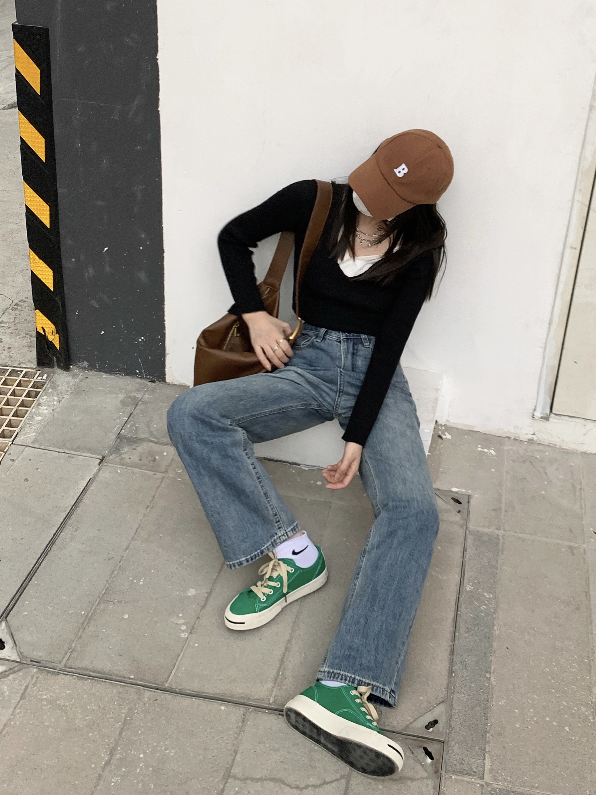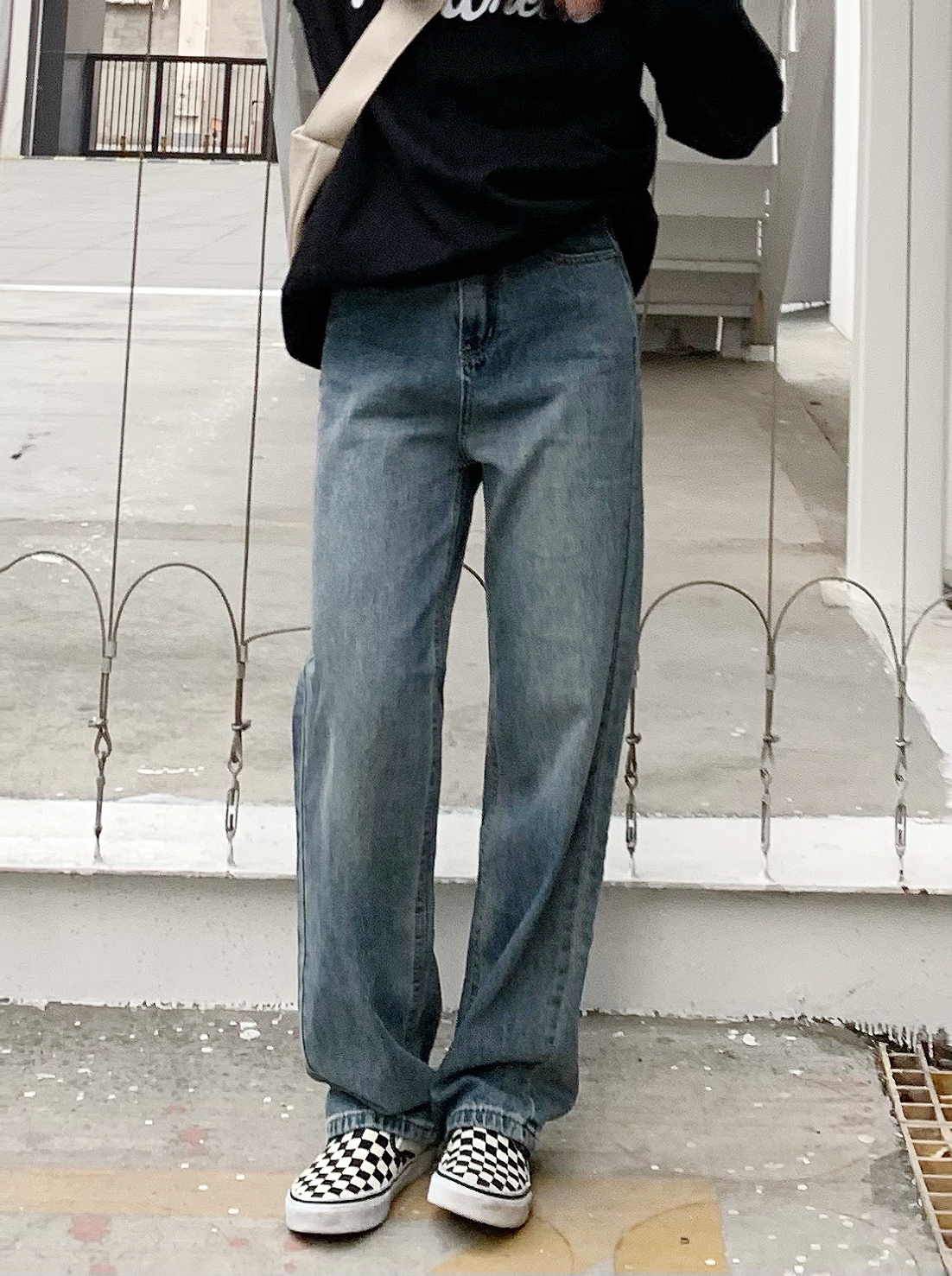 Pure Brother's Straight Drum Jeans 2023 Summer New Retro Washed High Waist Loose Broadleg Tug Pants Woman Little Guy-Taobao