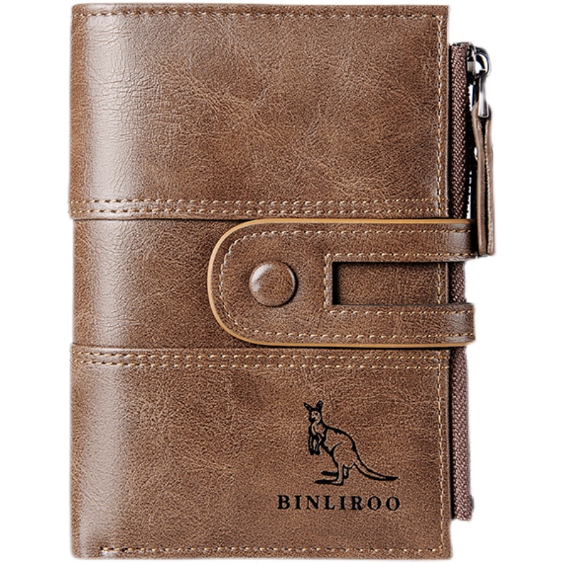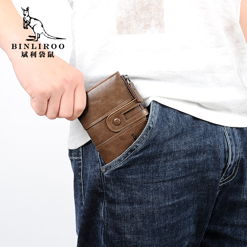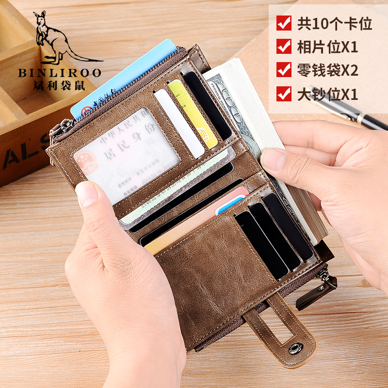 Binli Kangaroo anti-theft brush wallet men's leather texture high-end double zipper multi-card driver's license all-in-one wallet tide