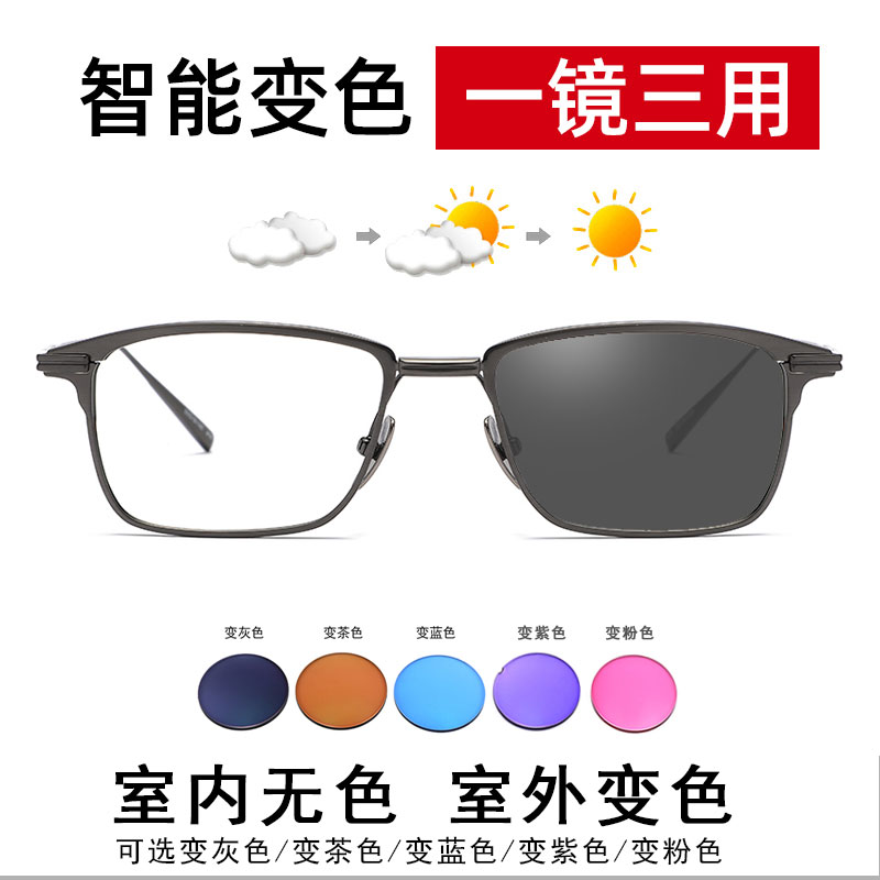 Japanese designer ultra light pure titanium myopia glasses male full frame fashion box discolored light eye anti-blue light