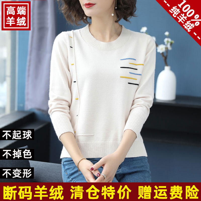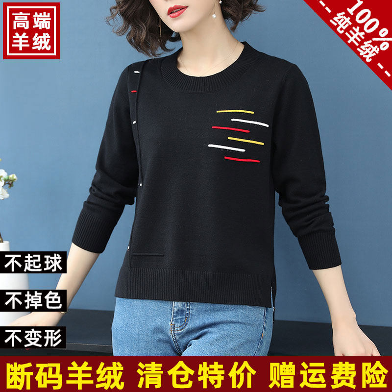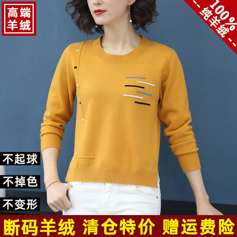 Ordos cashmere sweater women's autumn and winter new round neck short sweater women's loose outer wear wool bottoming shirt women