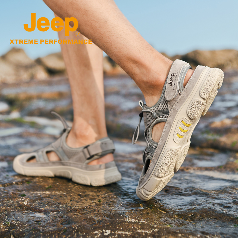 jeep sandals men's summer new hollowed-out breathable genuine leather beach shoe men outside wearing non-slip Baotou Driving shoe tide