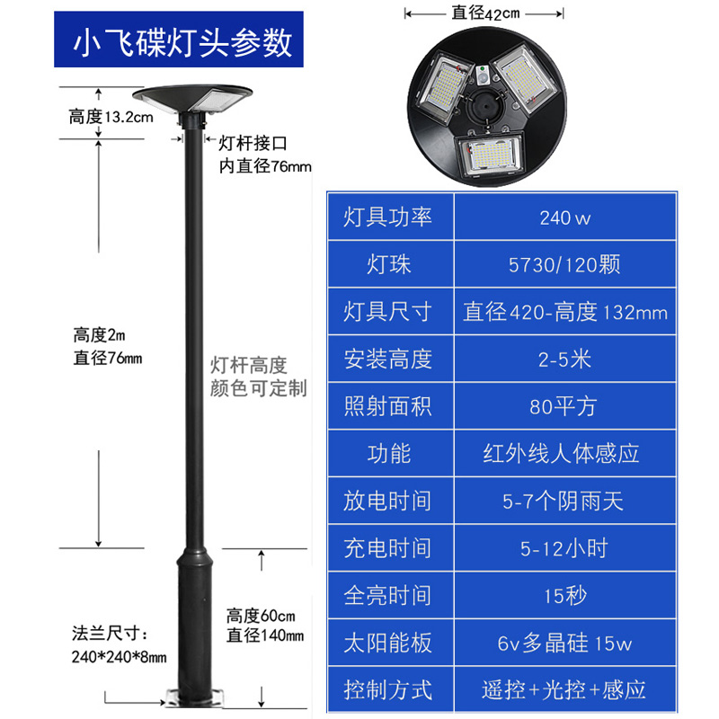 Solar garden lamp head street lamp outdoor waterproof super bright high power flying saucer high pole lighting landscape community street lamp
