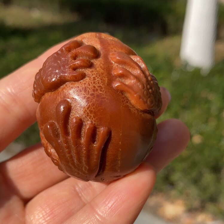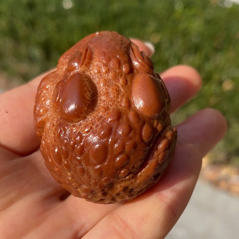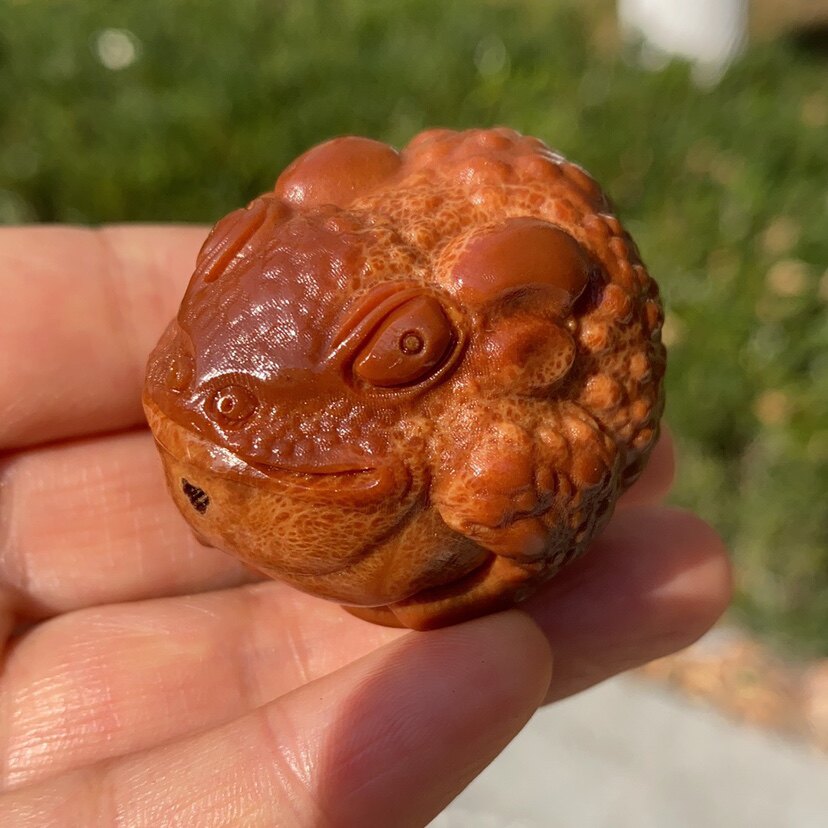 Manual engraving of Indonesian olive nuclear golden toad monocytoreworked nuclear sculpted single seed three-foot golden toad handlebar piece