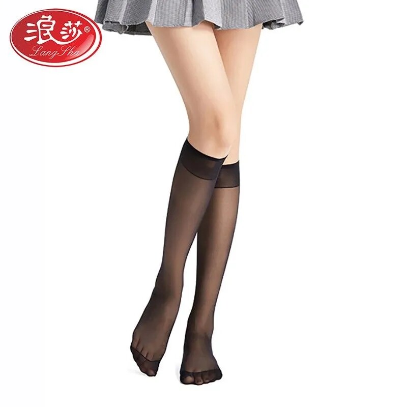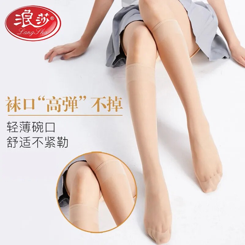 Surfsa midbarrel silk stocking female anti-seduces summer ultra-thin and semi-cut long cylinder over knee non-slip black meat color invisible calf socks
