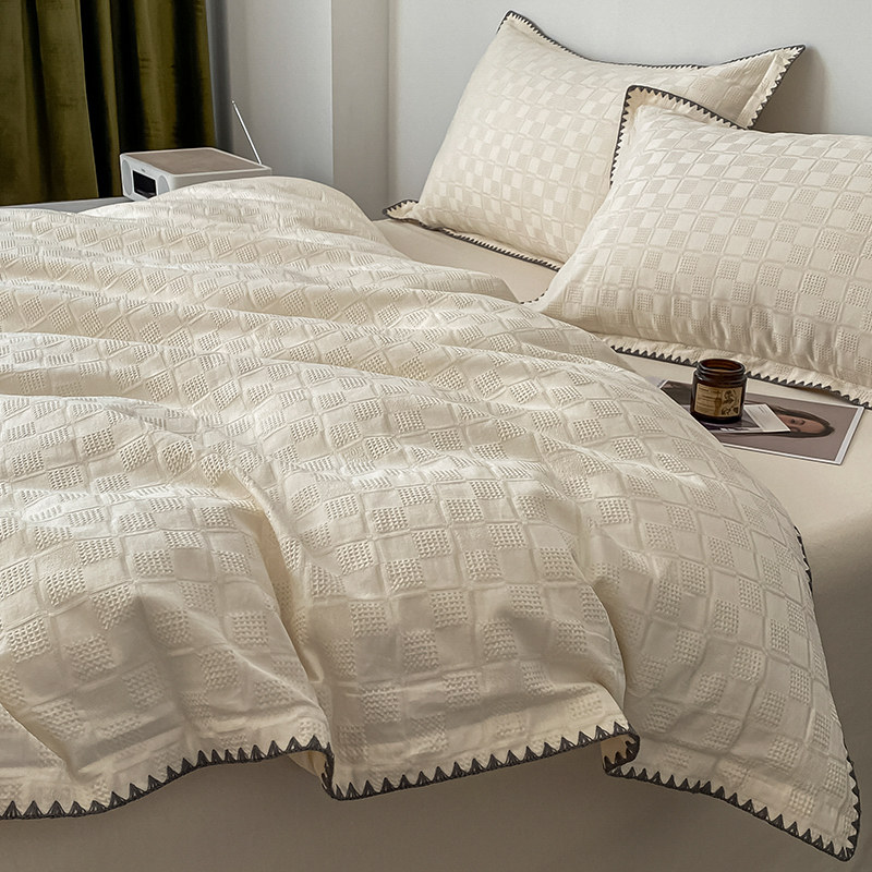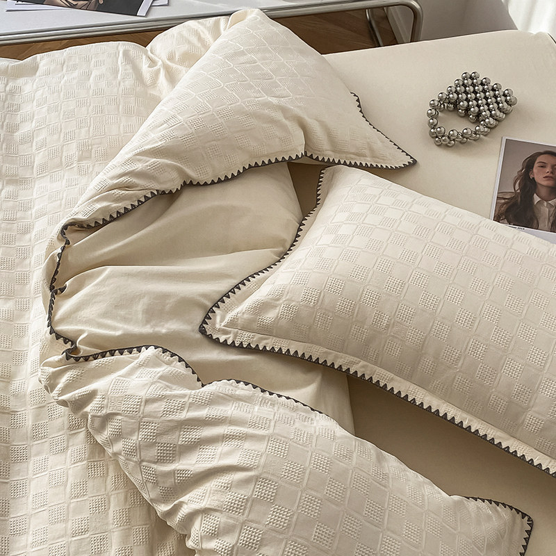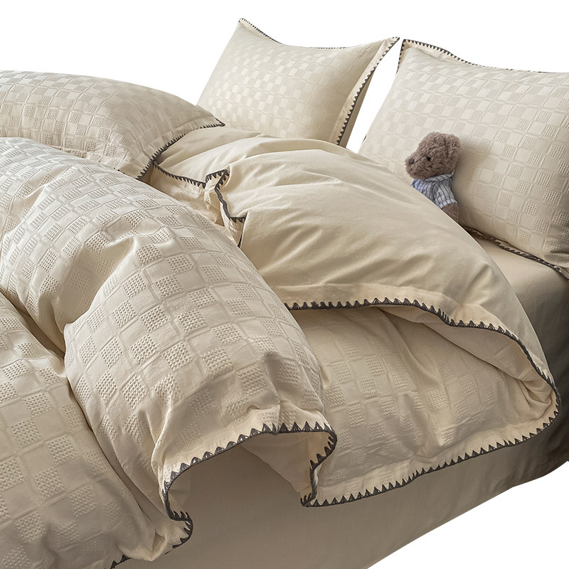 Four pieces of covered pure cotton all-cotton linen quilt cover light extravagant advanced senses minimalist pure color bed Ogasawara bed Bedding Spring Autumn Season