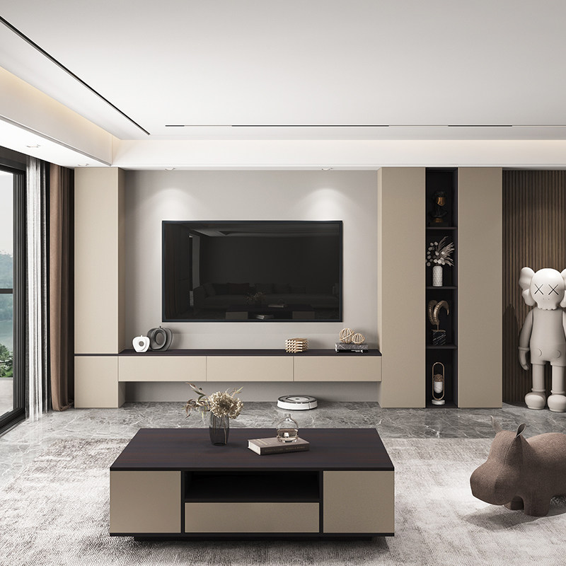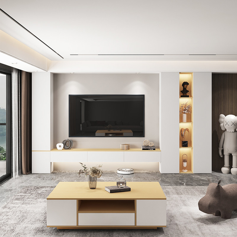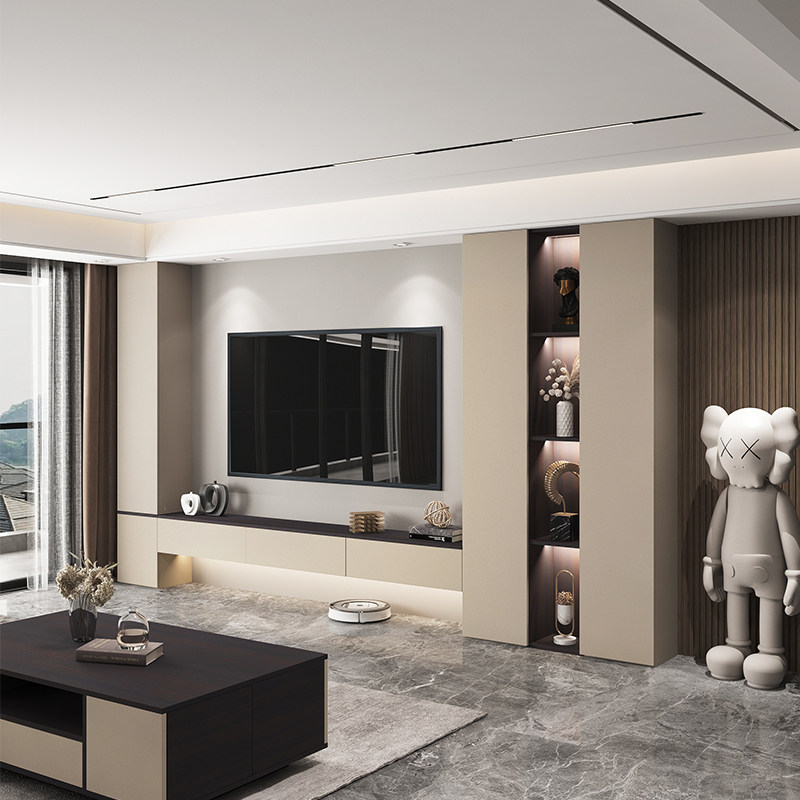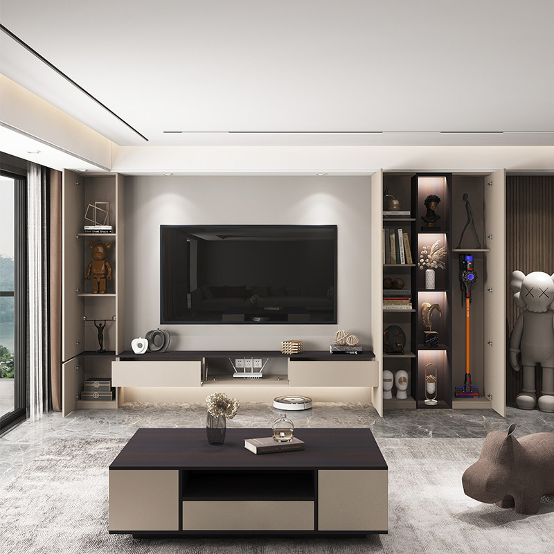 Living Room TV Cabinet Integrated Wall Cabinet Background Wall TV Cabinet Light Extravagant Wall Bookcase Customised Modern Brief