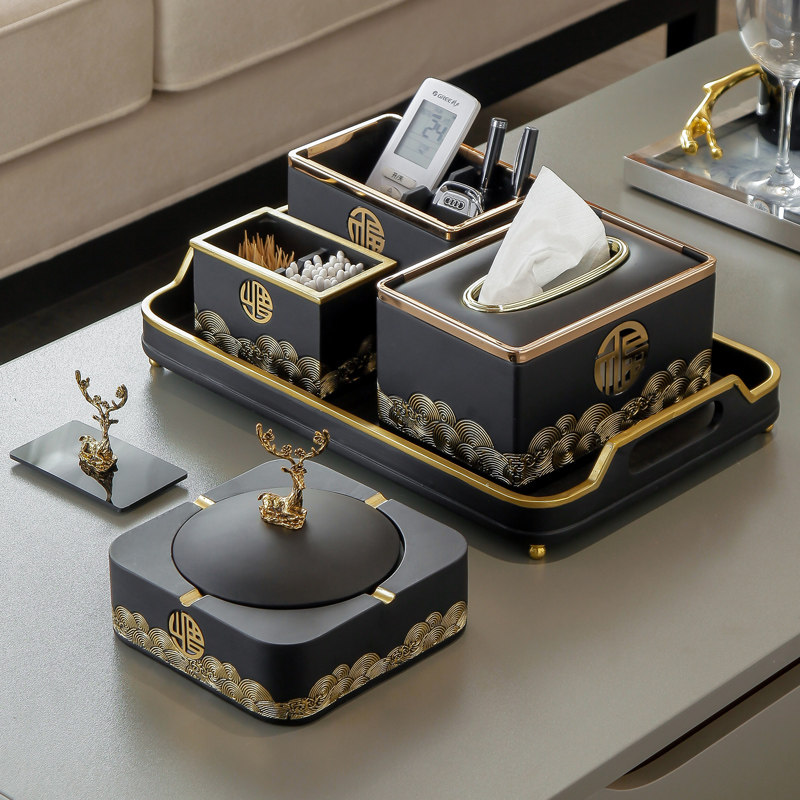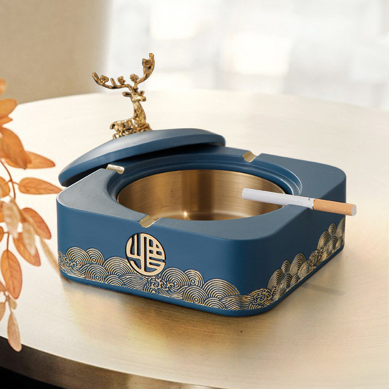 High-end ashtray with lid living room home trend creative decoration light luxury office anti-flying ashtray new Chinese style