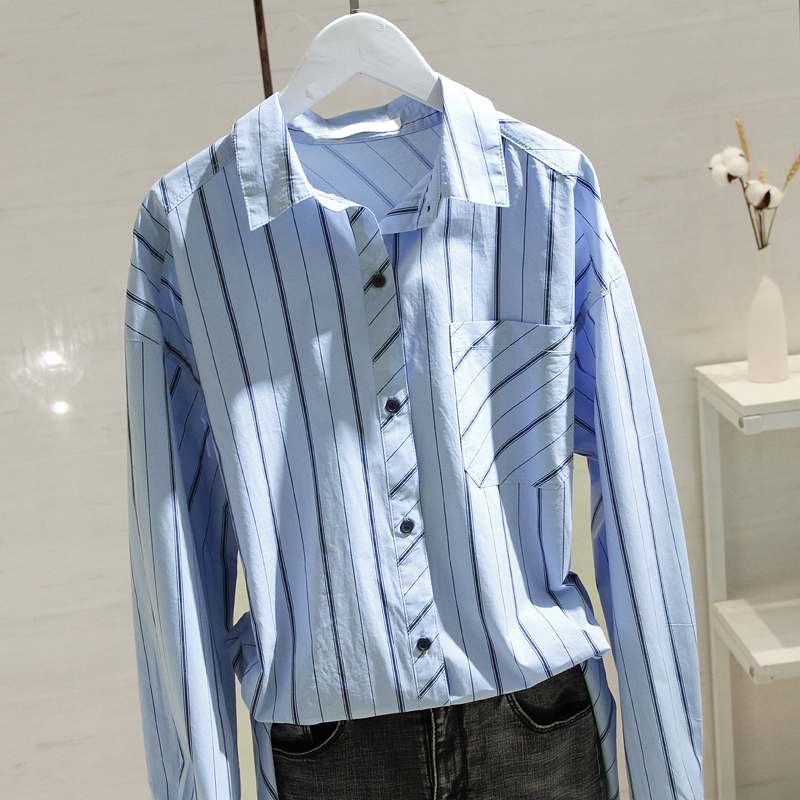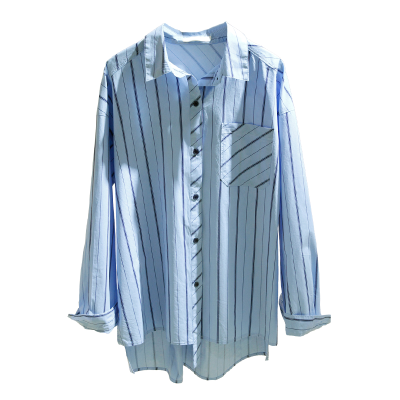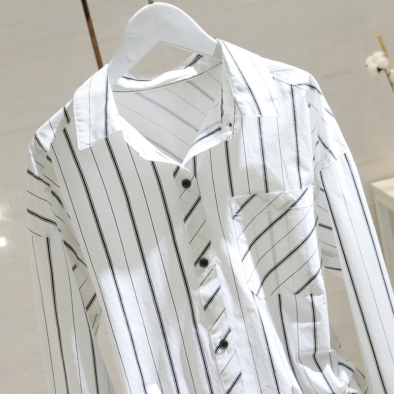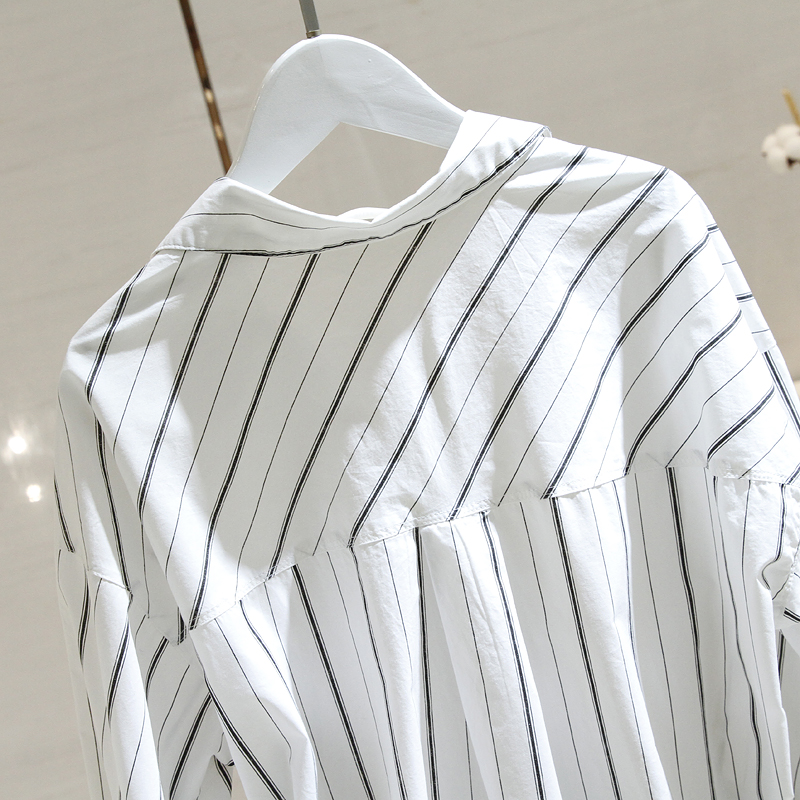 Tide brand white striped long-sleeved shirt women's mid-length version 2022 spring new loose and thin layered long-sleeved shirt