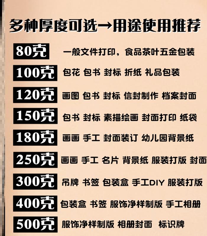 Kraft paper 80g fully open 10 sheets (light color) kraft paper 100g fully open 10 sheets (light color) kraft paper 120g fully open 10 sheets (light color) kraft paper 150g fully open 10 sheets (