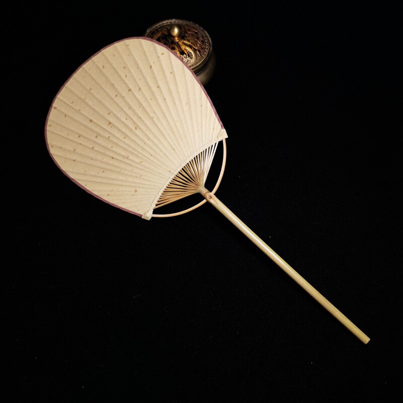 Long-handled oval rice paper fan sprinkled with gold red palace fan Japanese-style Chinese antique blank painting calligraphy fan