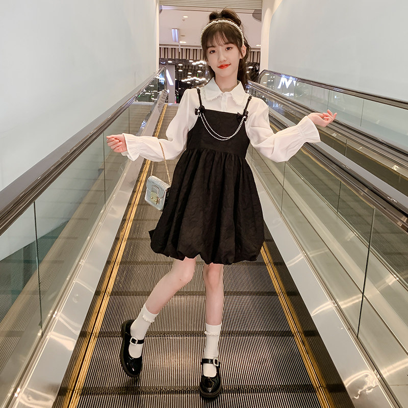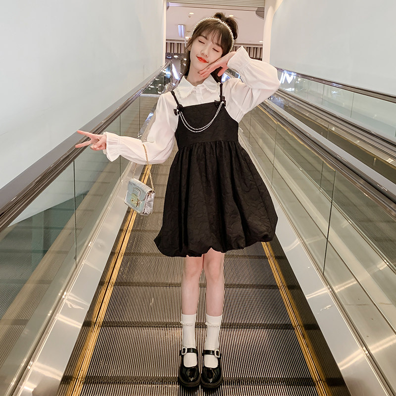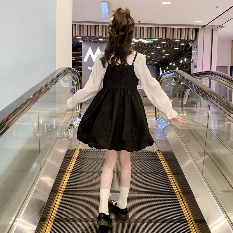 Black-Shirt Sling Skirt Black-Short Sleeve Baby Bag Skirt Two-piece Collection Plus Purchase Priority Shipping