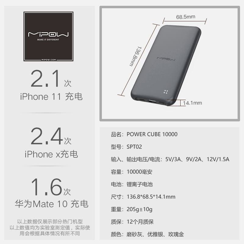 MIPOW wheat bubble fast charging mobile charging large capacity portable ultra-thin PD18W power bank 10000 mAh for iPhone13Promax 12 XR Hua