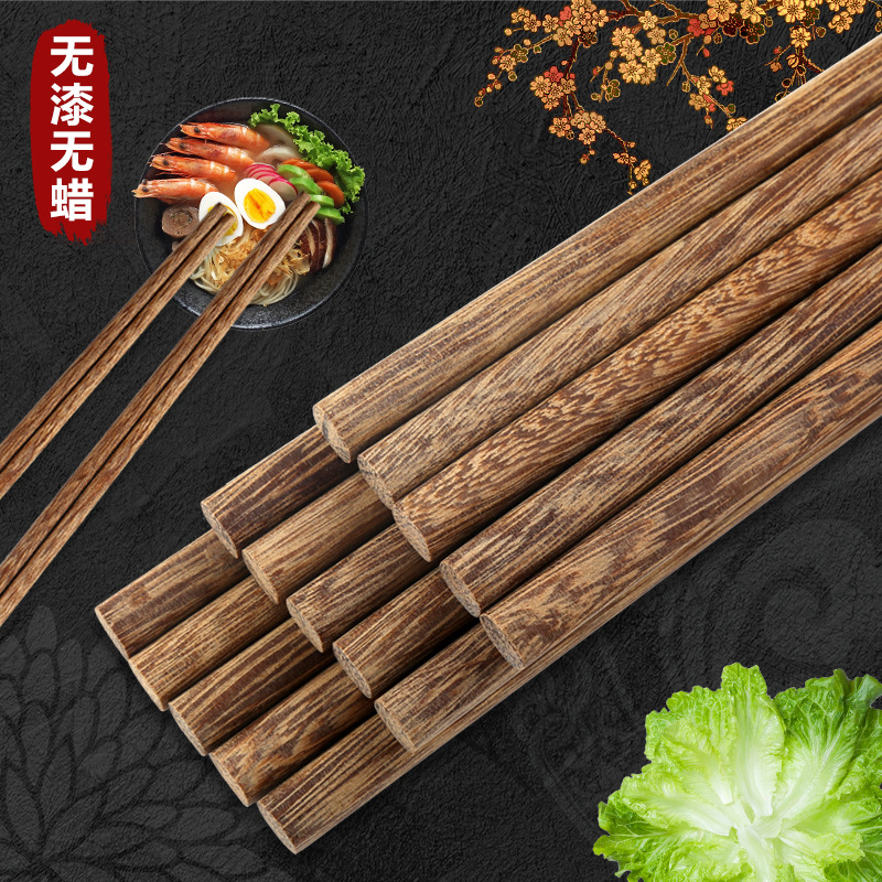 Household chicken wings wooden chopsticks 10 pairs of unpainted unwaxed wood chopsticks family loaded wooden solid wood chopsticks natural fast