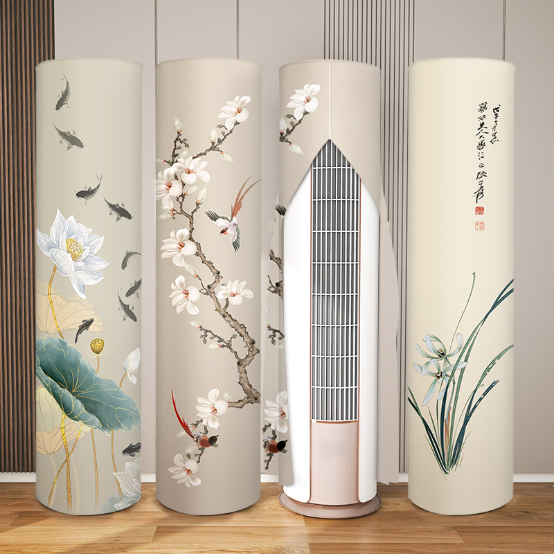 Air conditioning hood sleeve cylindrical Chinese jade Lanho floral decoration cloth art universal vertical air conditioning dust cover boot up not to be taken