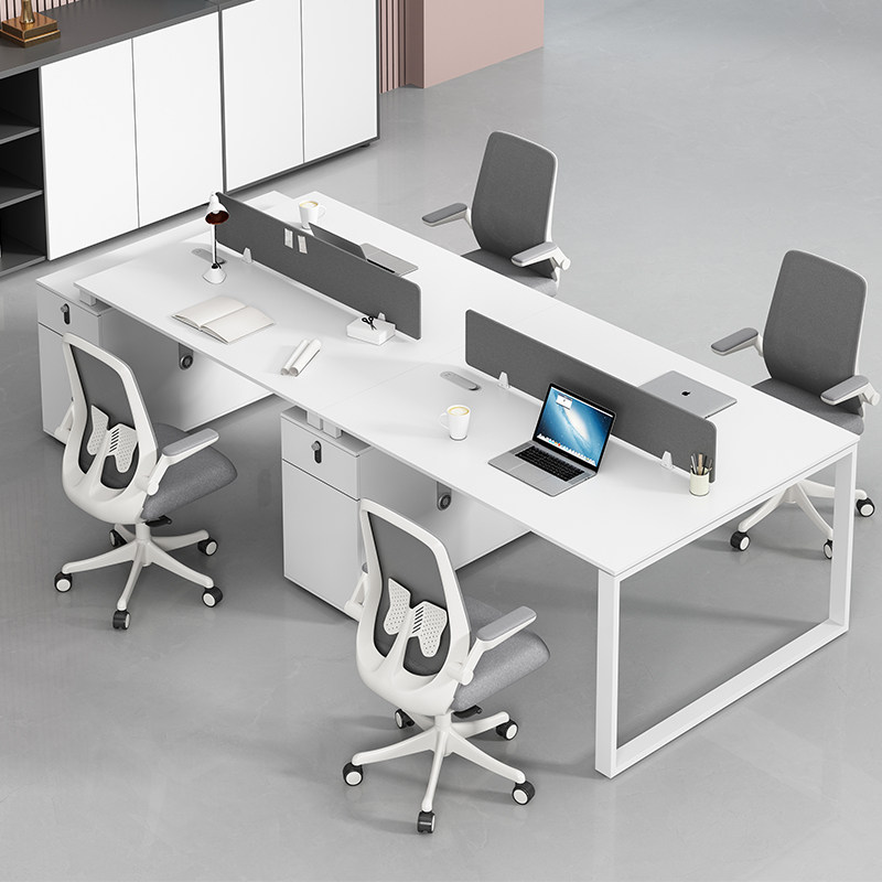 Desk chair combination white minimalist modern staff desk office 2 4 6 people screen office furniture