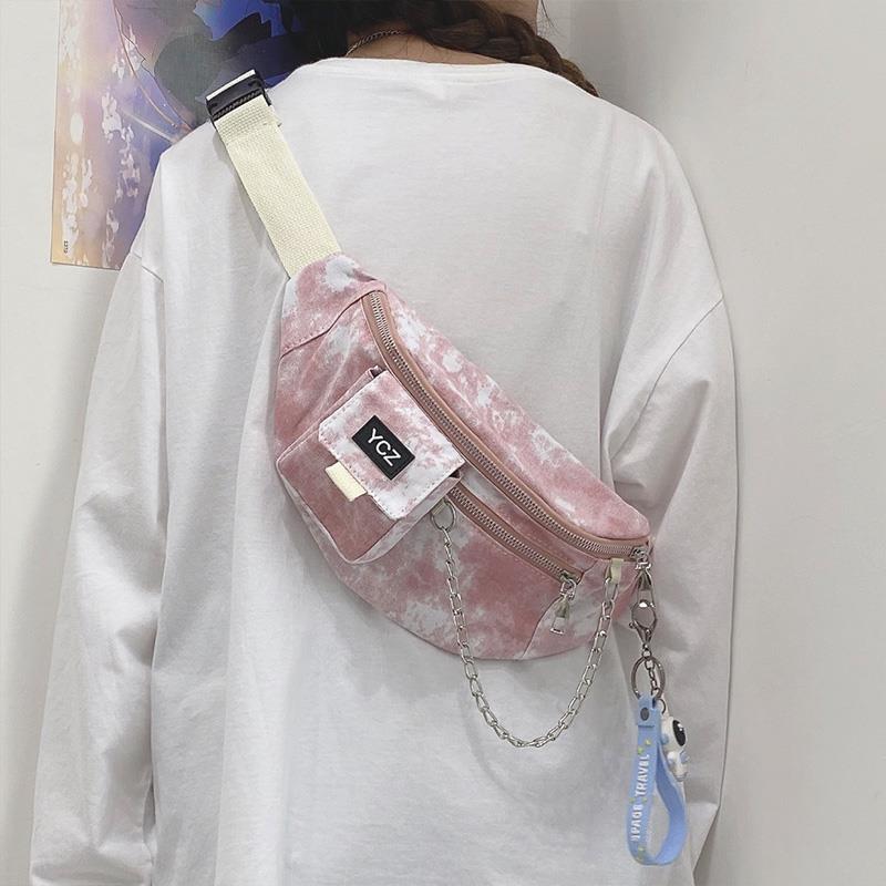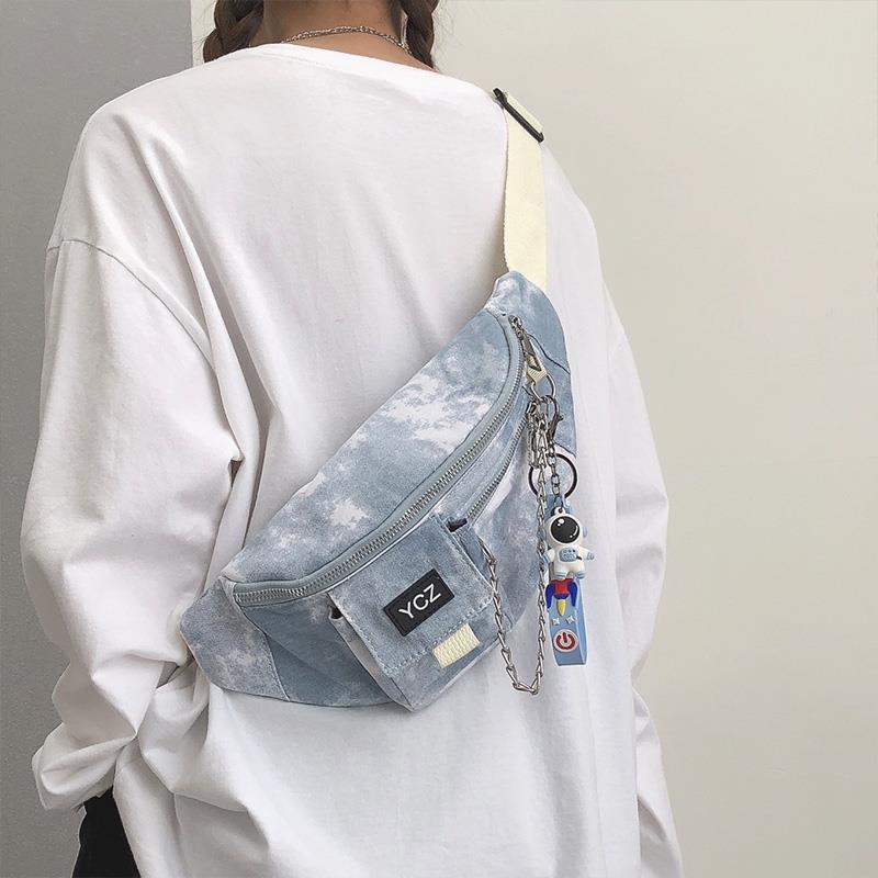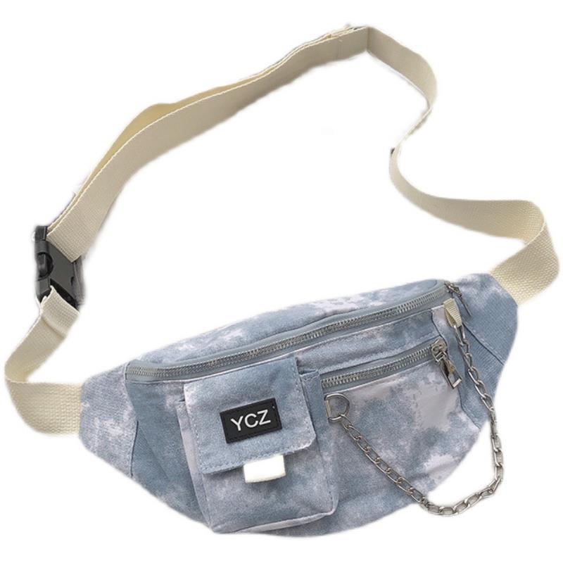 Tie-dyed canvas bag women's trendy brand ins personality trend student chest bag women's messenger bag summer wild Hong Kong style pocket