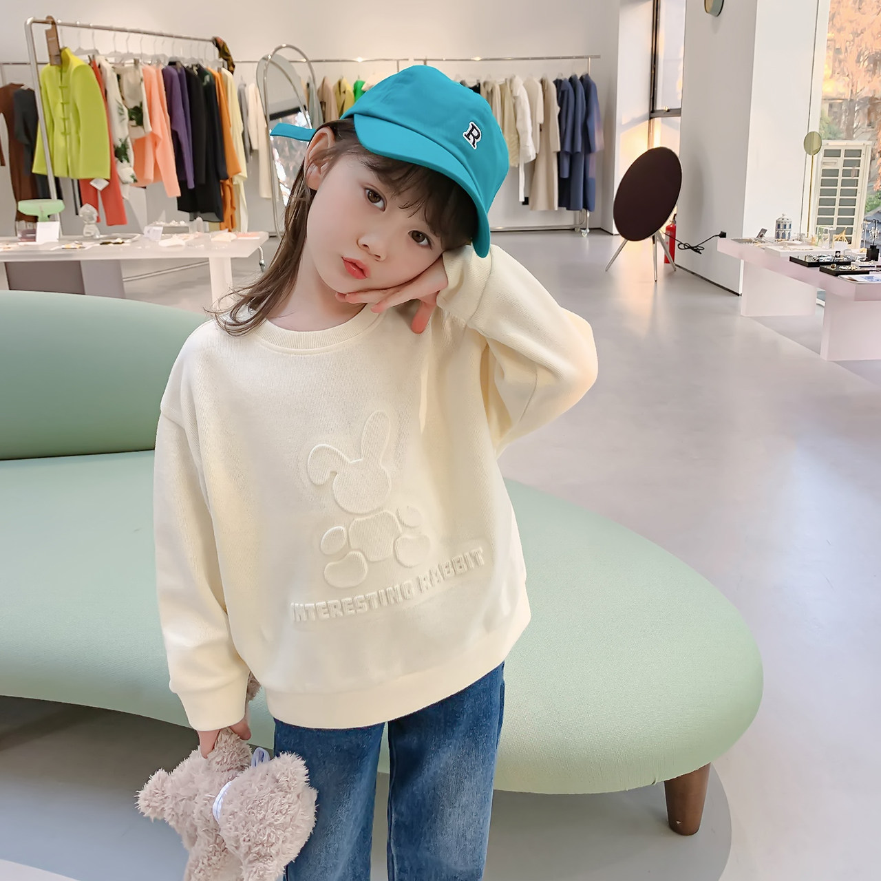 Left West Children's Clothing Girl Thick T-Shirt Spring Autumn Money Children's Pure Color Ensemble Casual Cover Top 2022 New Foreign Style Trendy
