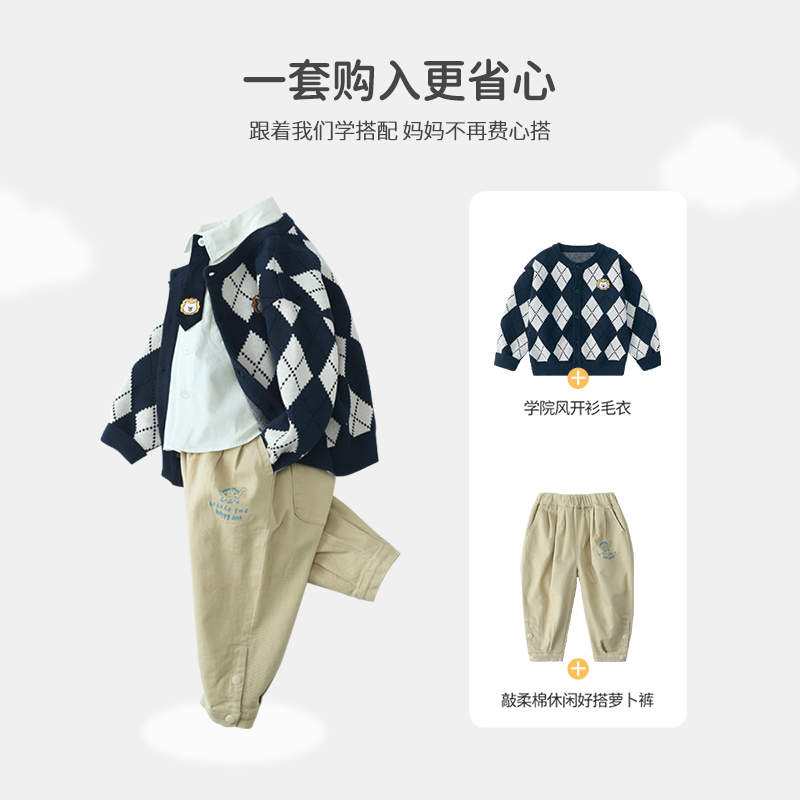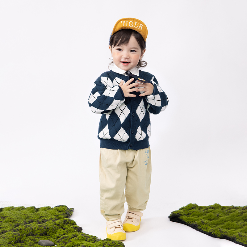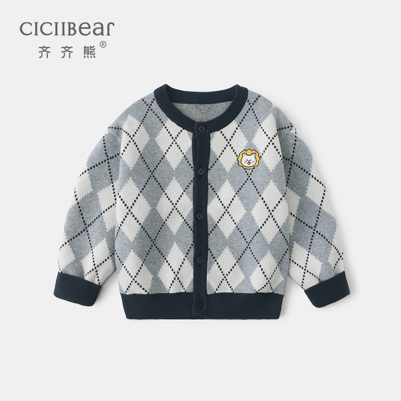 Zizi Bear Baby Cardiovert Sweater Pure Cotton Spring Autumn Girl Boy Sanitary Clothes Baby Needles Cardiovert Children Knit Jacket