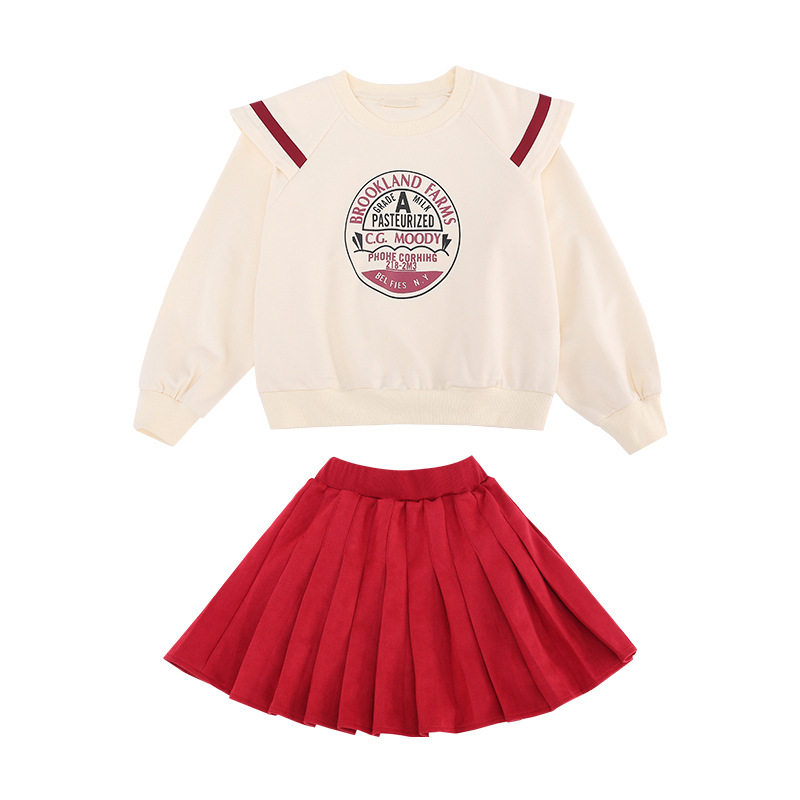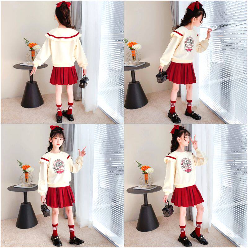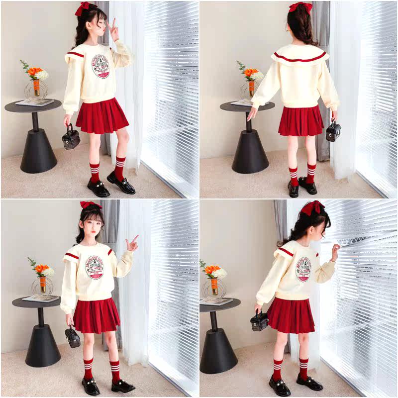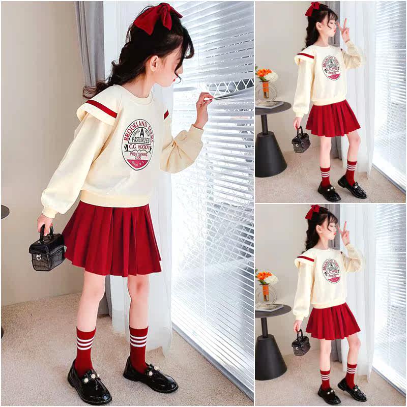 Girl Suit 2022 New Spring Autumn Girl Trendy CUHK Boy Spring Dress Blouse Foreign Pie Clothing Short Dress Two Sets