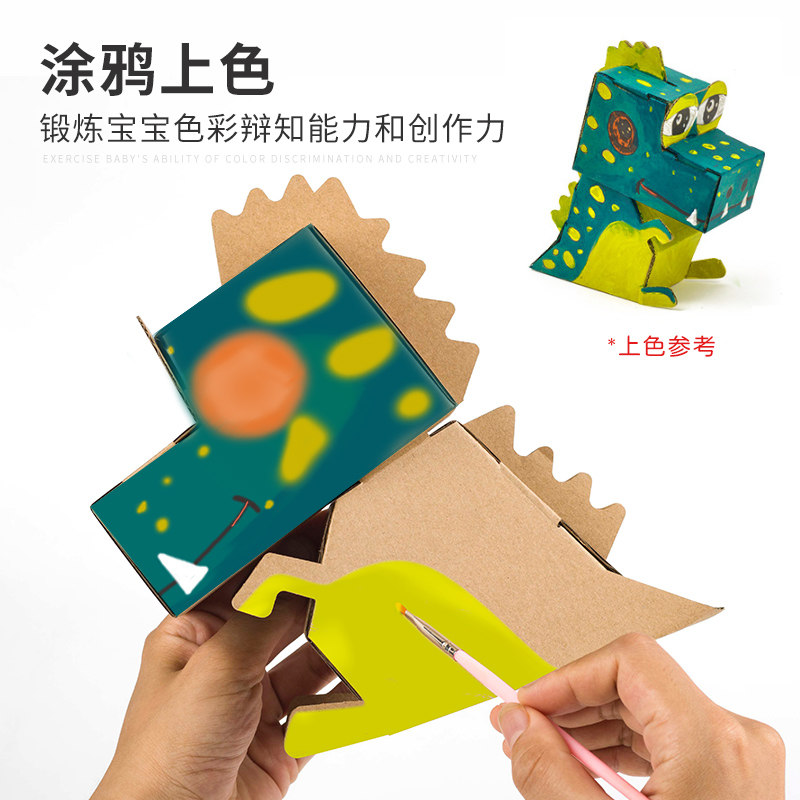 Children's coloring toy carton handmade diy dinosaur cardboard model box corrugated paper graffiti airplane