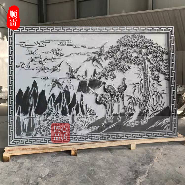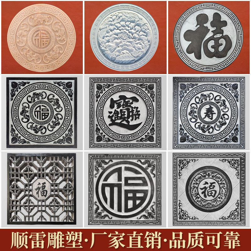Stone carving Fu character relief bluestone antique wall carving Han white jade shadow wall wall Chinese style hollow background wall sunset red mural