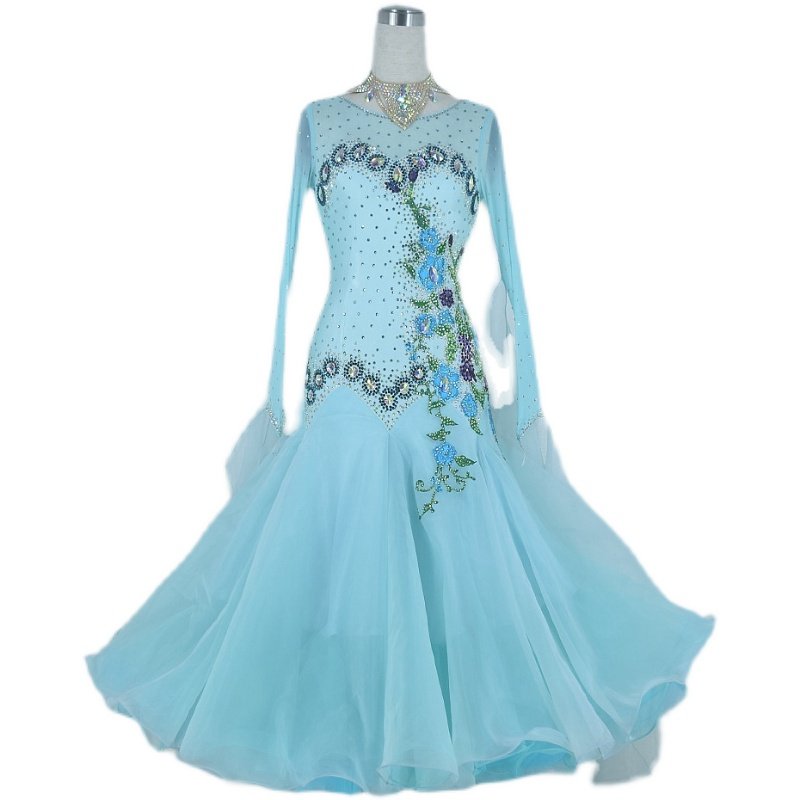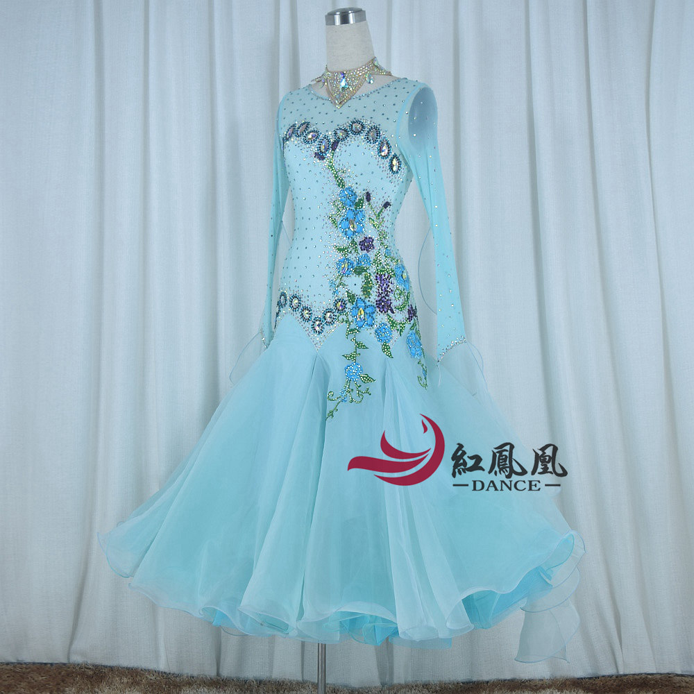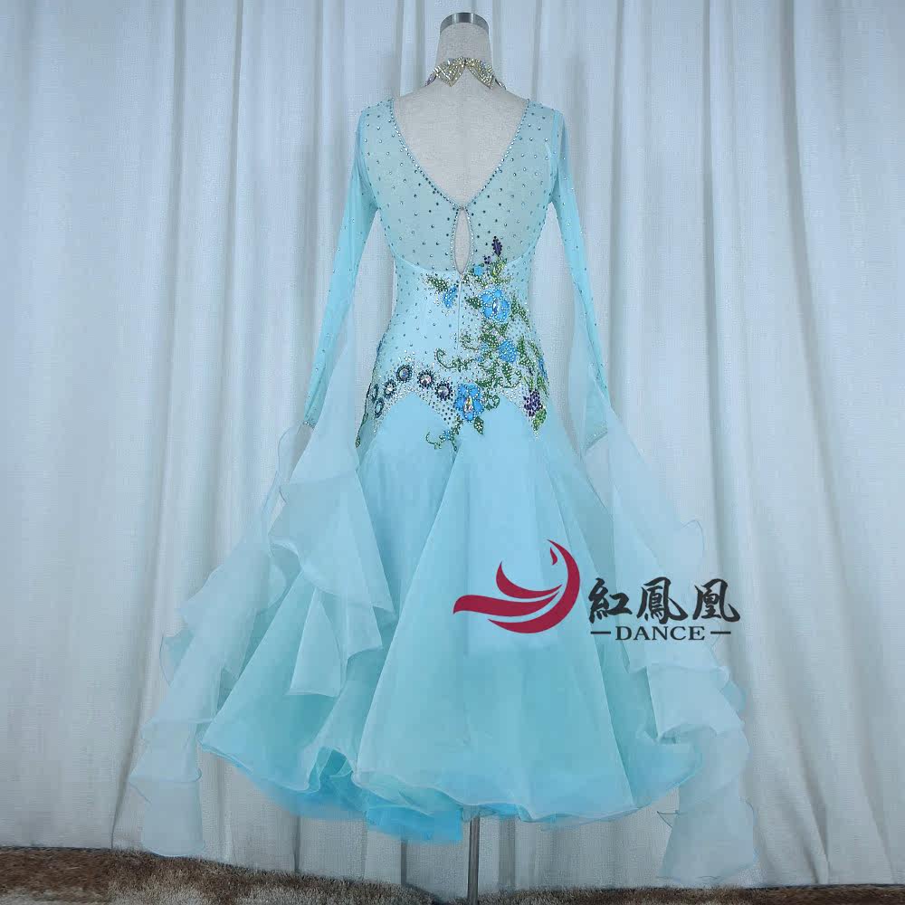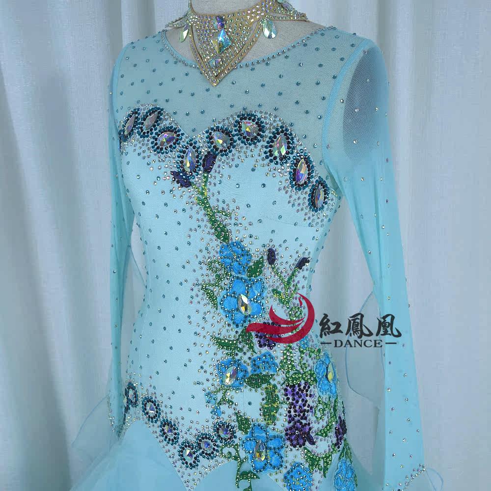 Red Phoenix Custom Light Blue Morden Dance Competition Dress Waltz Tango Fox Walk Performance Out of the Grand Pendulum Skirt 1008