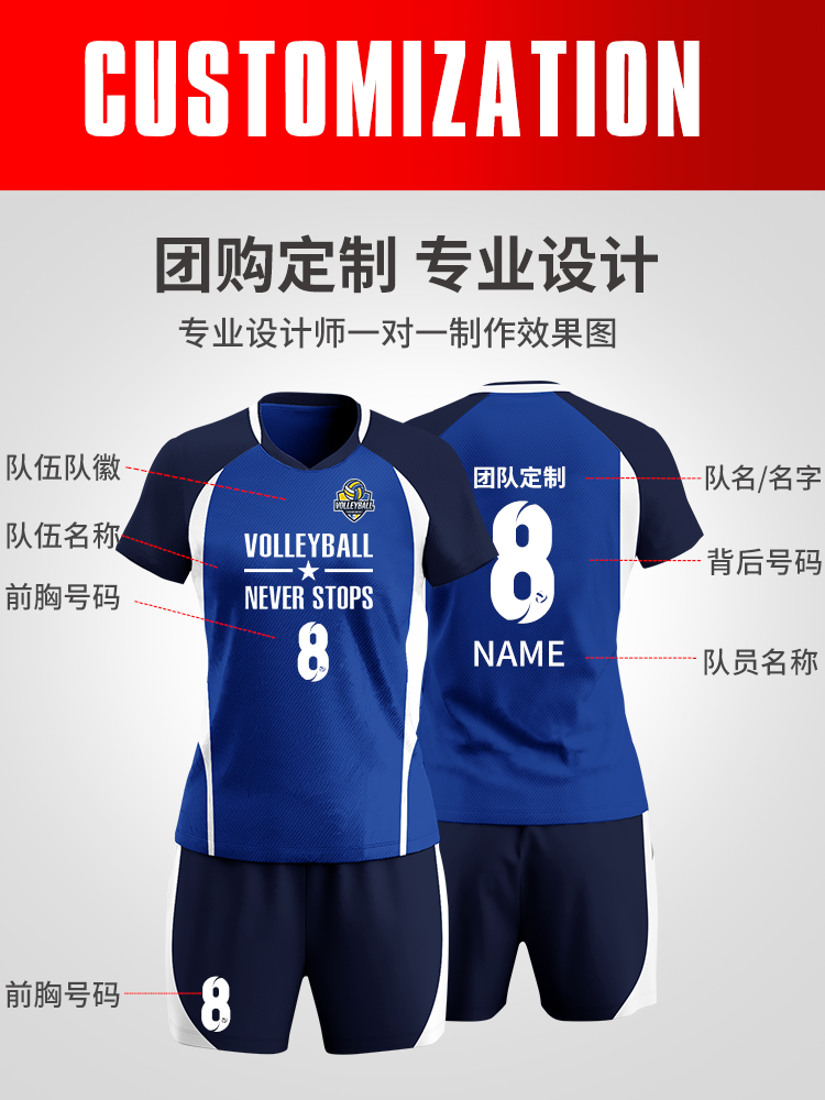 Volleyball Sportswear Suit Schoolgirl's race suit training team to wear short sleeve male air volleyball clothes custom printed word number-Taobao