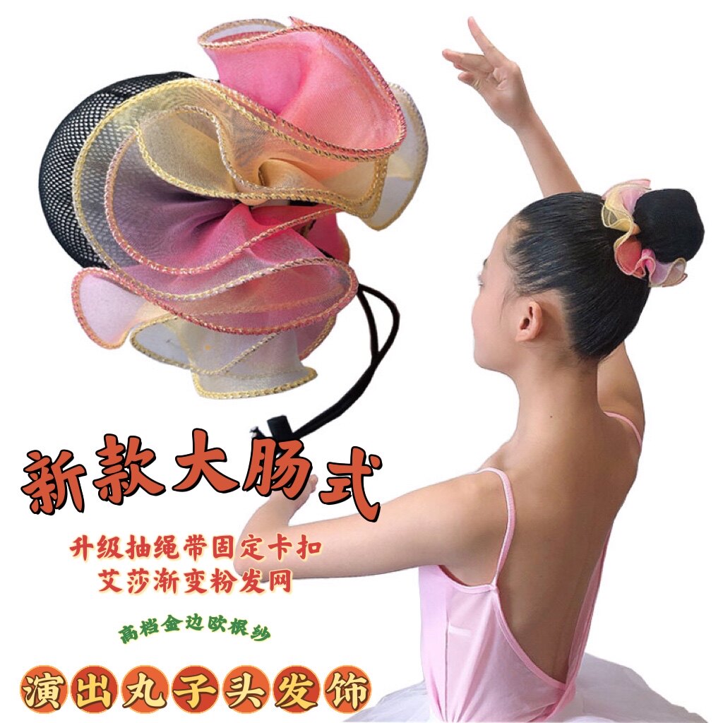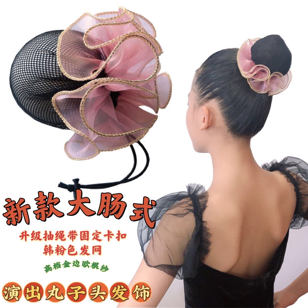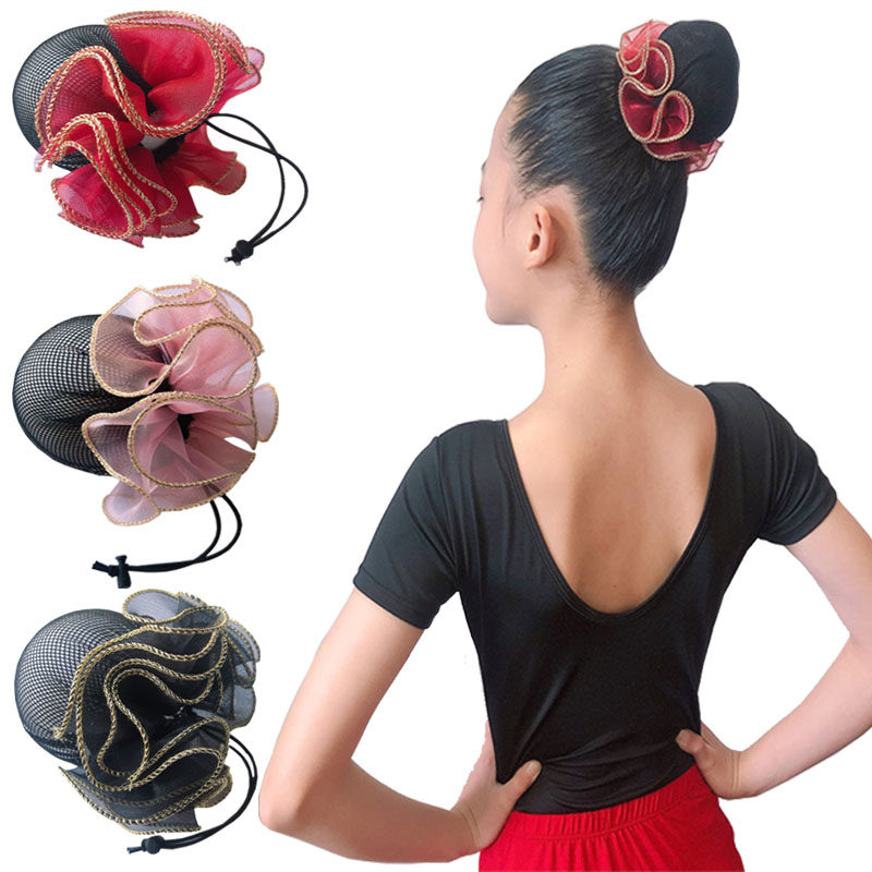 Girls dance flower hair ring hair net headwear children's performance plate hair ball head ballet head flower hair rope hair accessories