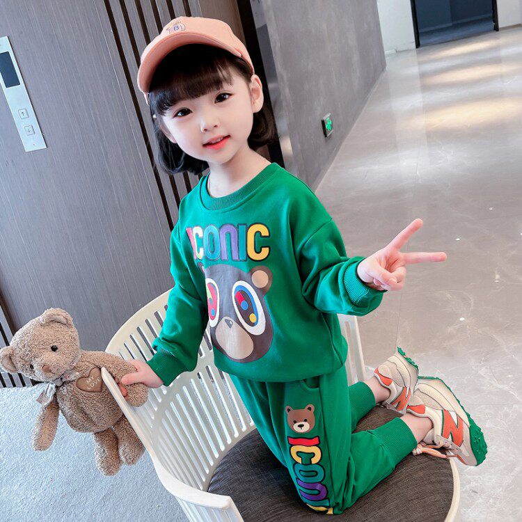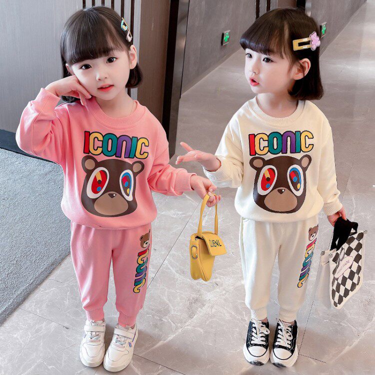 Girl Spring Autumn Clothing Suit 2022 New Children Foreign Pie Baby Nets Red Trendy Kids Wear Pants Thick Cotton T Two sets