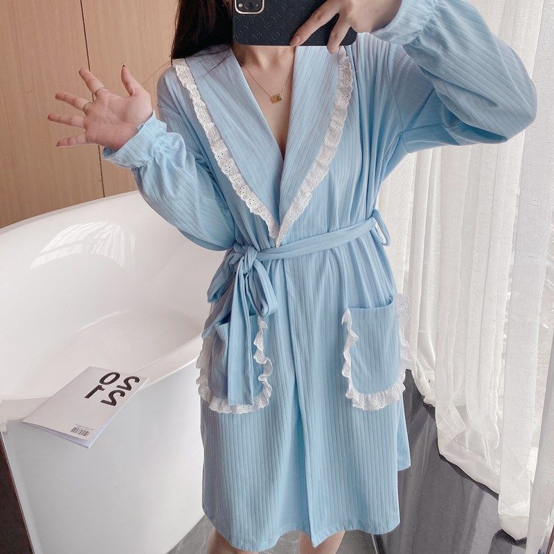 2023 new nightgown women's spring and autumn long pajamas sexy Japanese sweet cotton bathrobe thin bathrobe nightdress