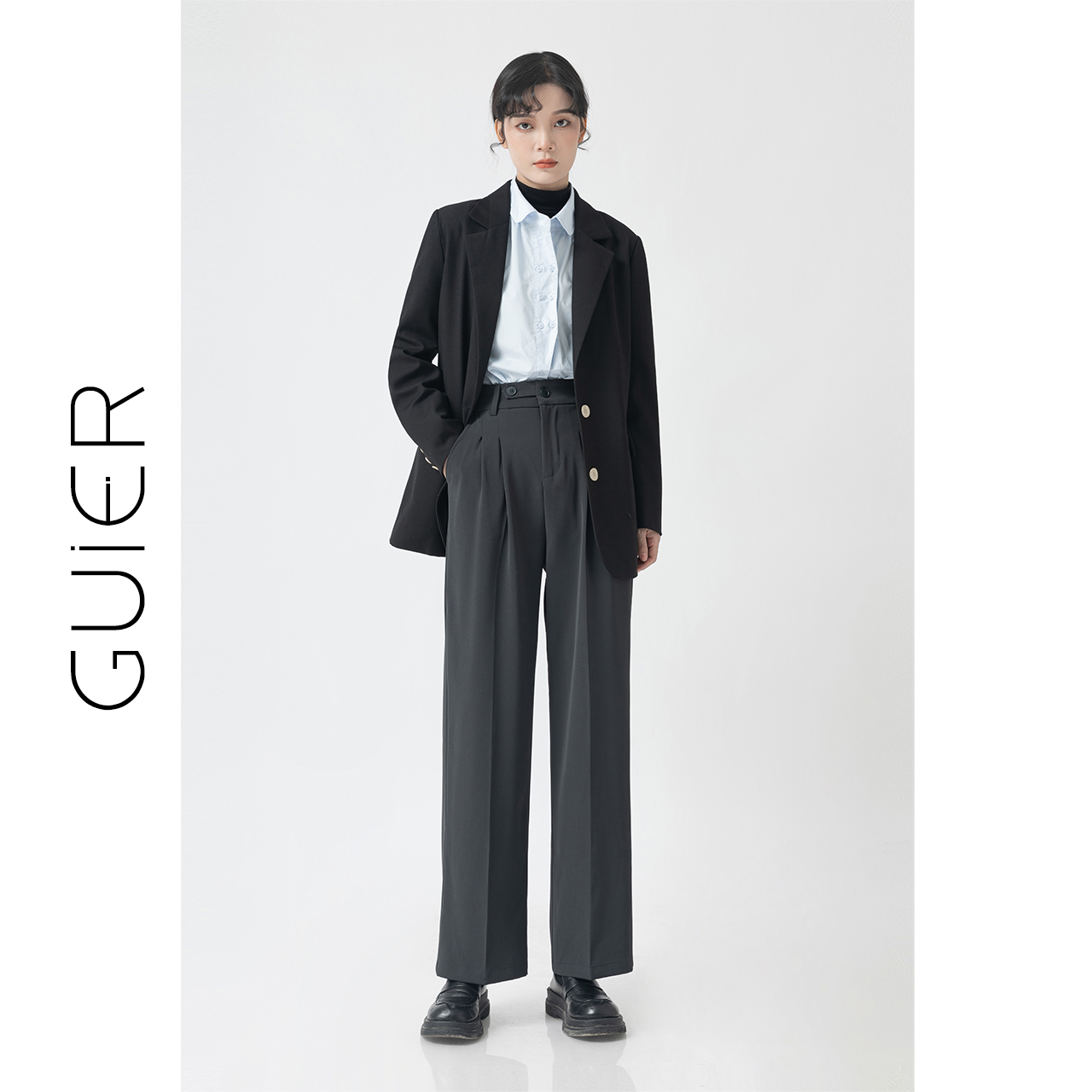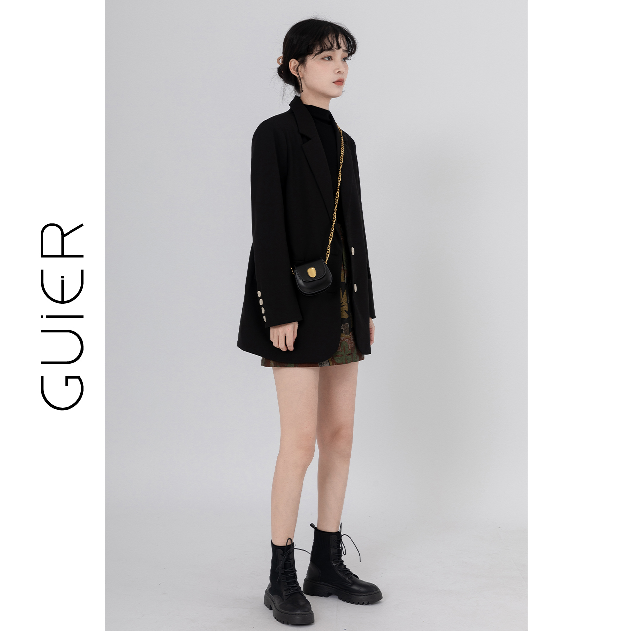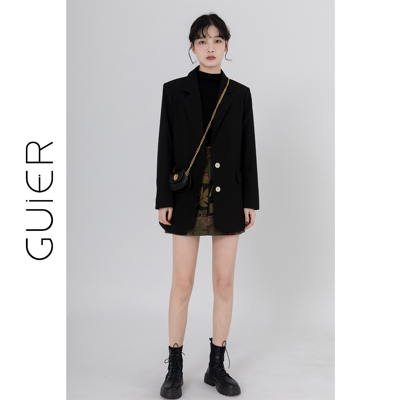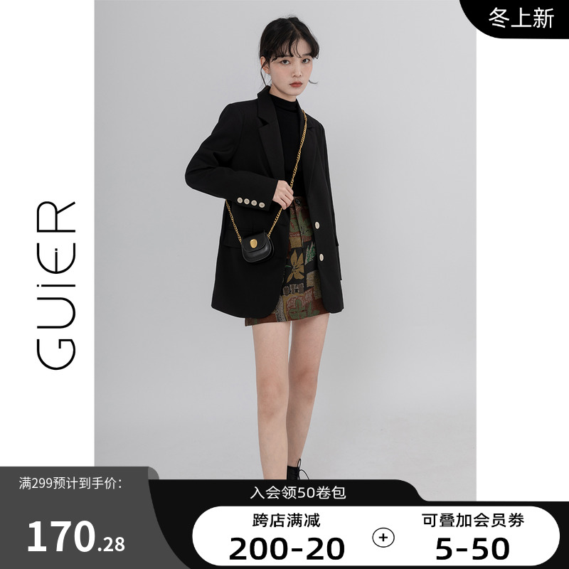 "GUIER" black suit jacket women's 2022 new autumn high-end design niche suit top