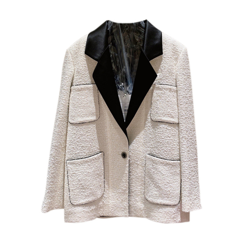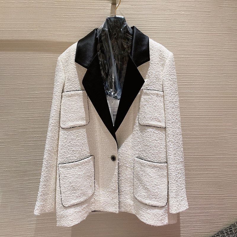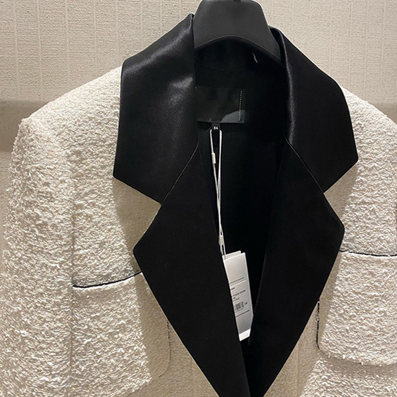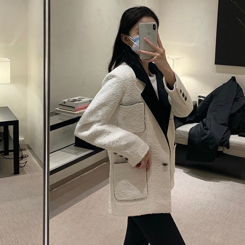 Black and white coloured little fragrance girl 2022 new autumn winter wool suit rice white coat blouse