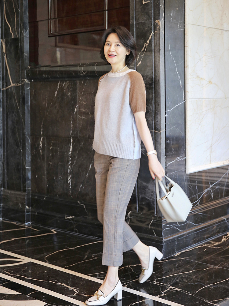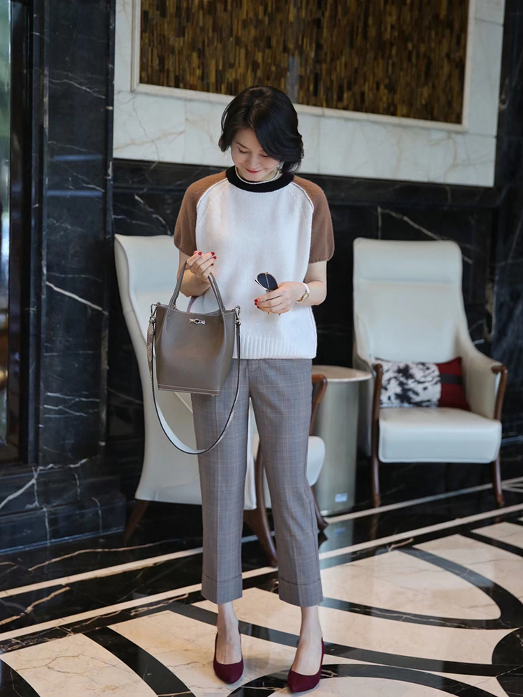 I am Capricorn Absolutely beautiful contrast big brand sense dye 100 cashmere spring and summer can wear a crewneck short-sleeved knit shirt