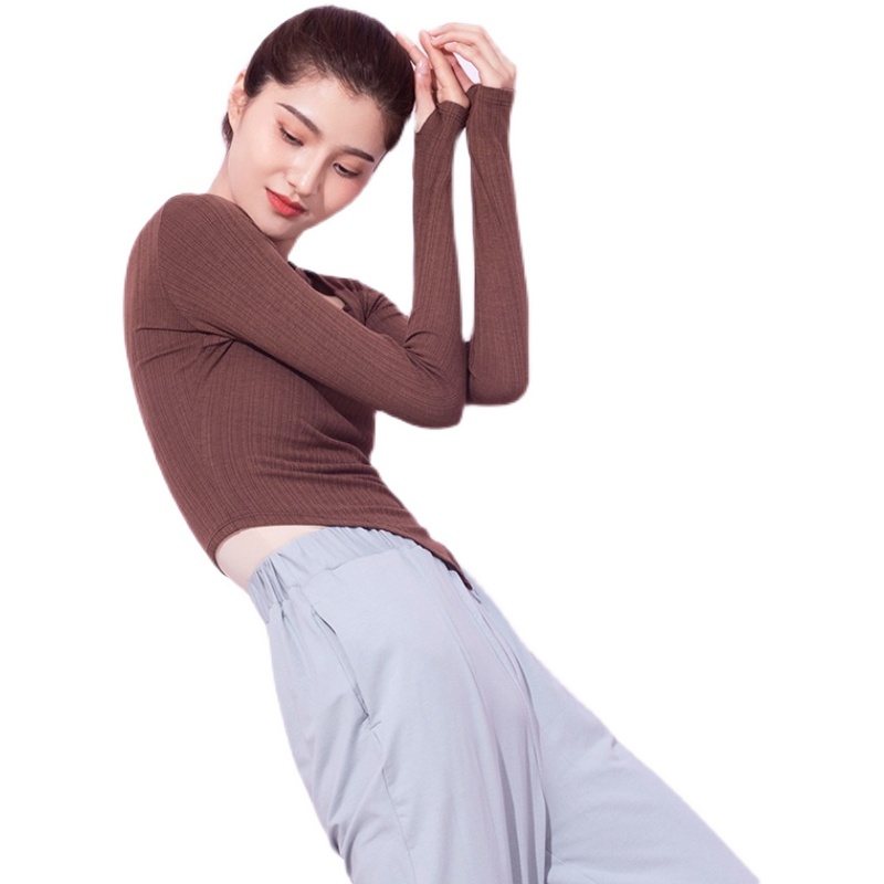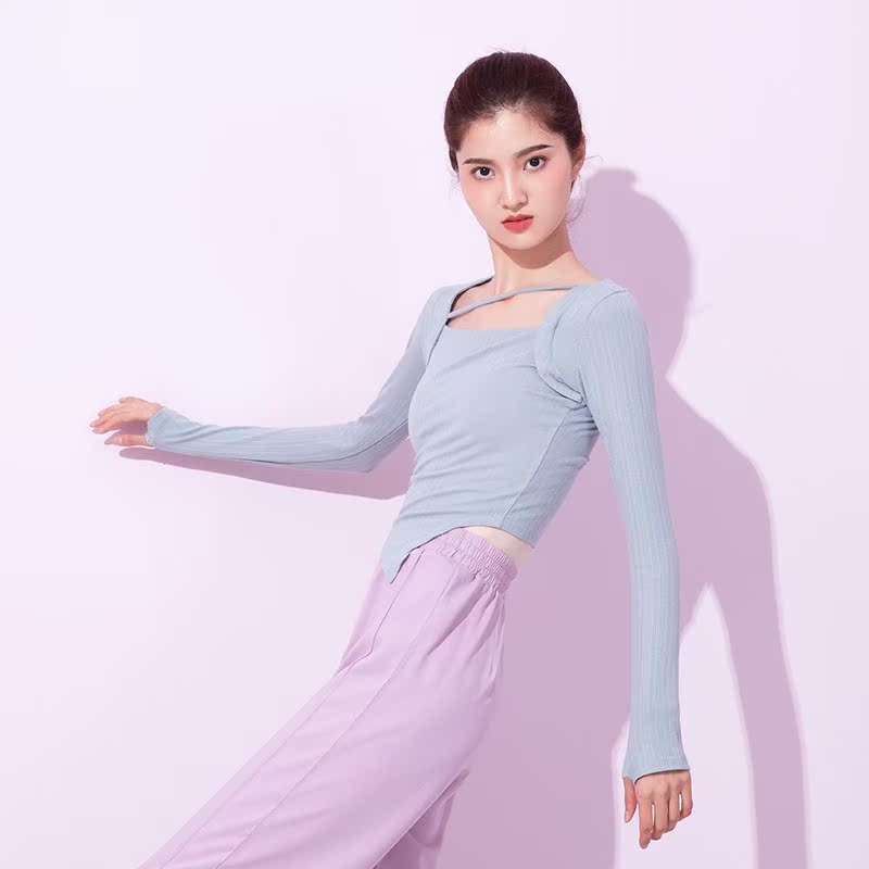 Modern dance dance suit Long sleeve blouses professional practice Belly Leather Dance Short of irregular Thin Spring Autumn Knit Women