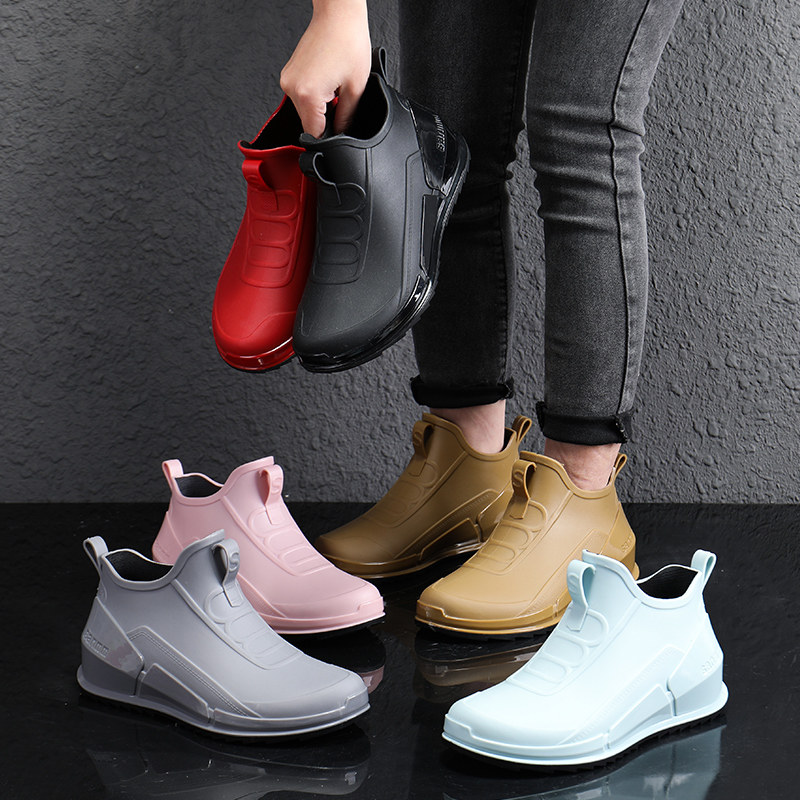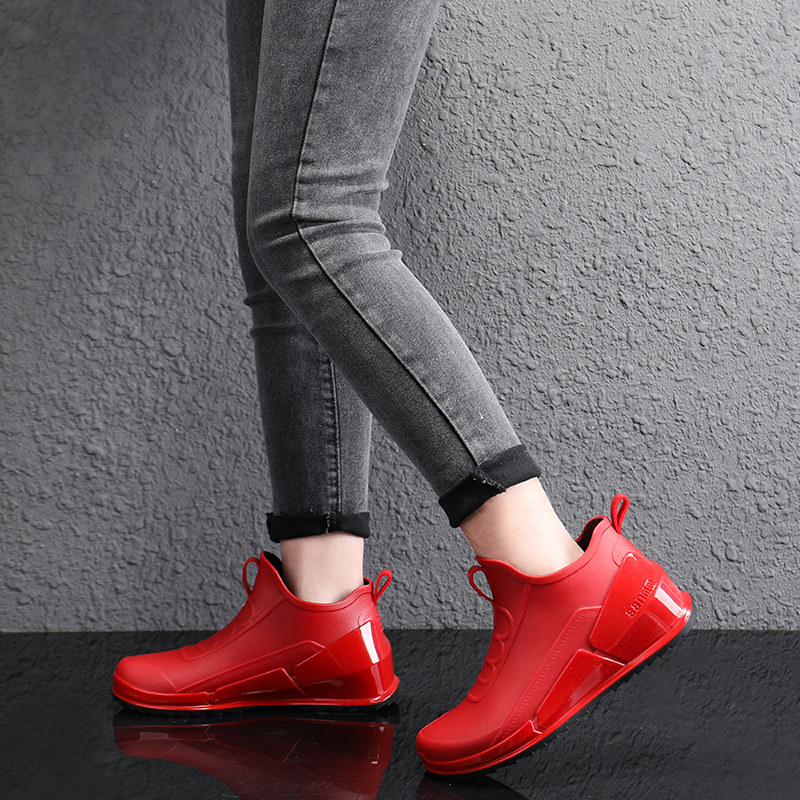 Spring Autumn Fashion Han Edition Waterproof Short Cylinder Casual Students Rain Shoes Women Rain Boots Inner Heightening Plus Suede Cute Water Shoes Glue Shoes