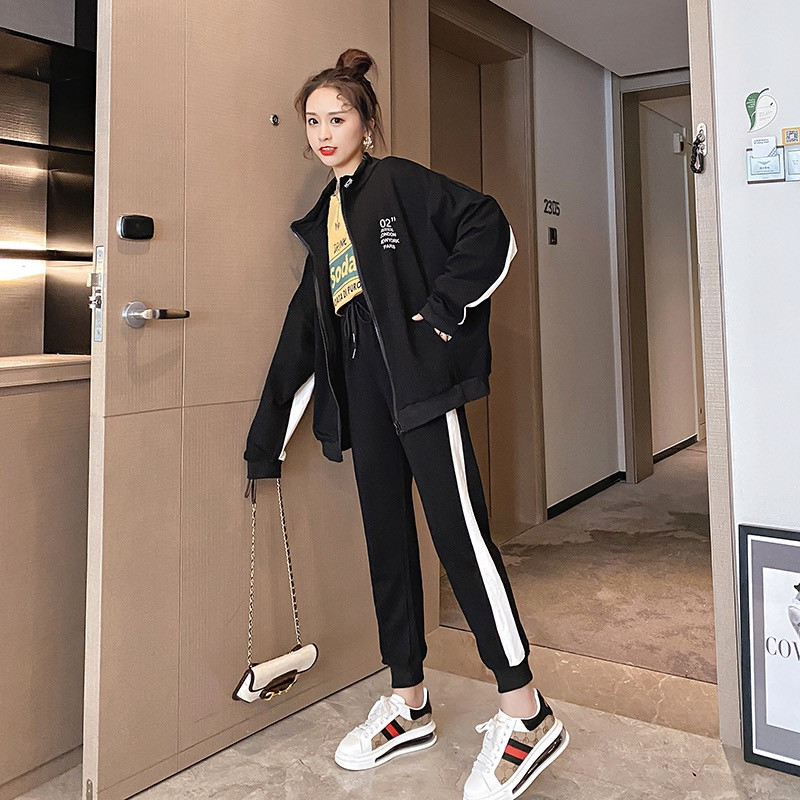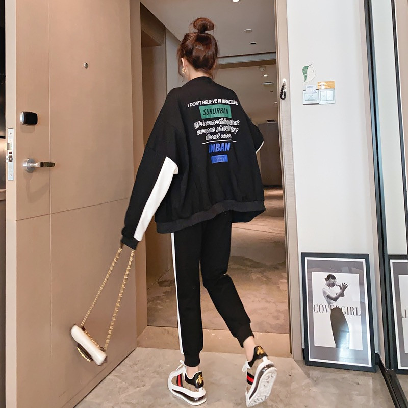 Spring and Autumn Sports Suit Female Students Korean Version Loose and Slim Fashion Western Style Sweater Casual Two-piece Running Suit Trendy