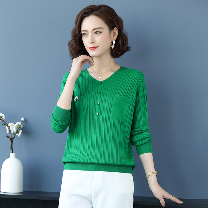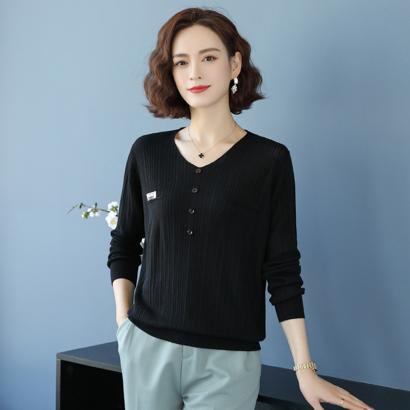 Lady V collar sweater dress outside early spring wearing 2022 new blouses V collar fashion minimalist jersey T-shirt
