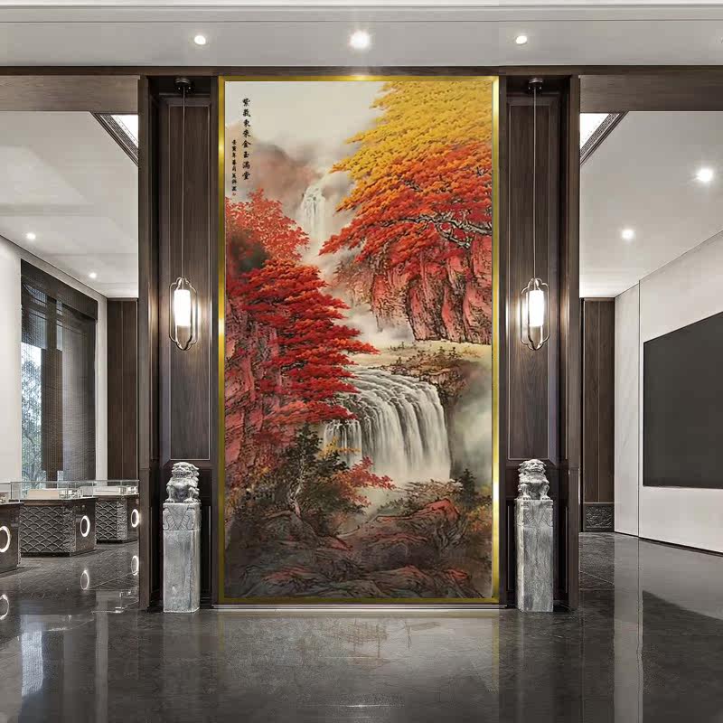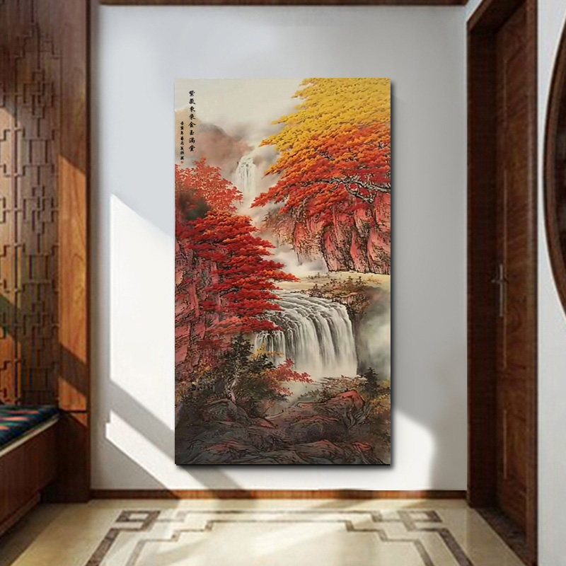Hand-painted landscape painting porch decorative painting entrance hallway aisle mural vertical version simple modern home living room hanging painting