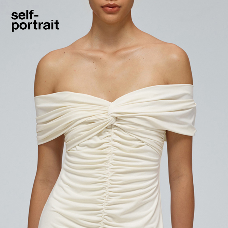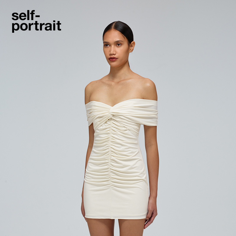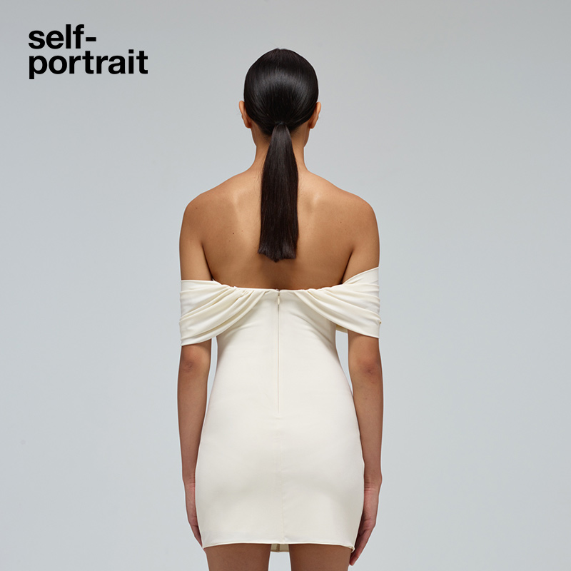 self-portrait 2022 spring and summer ivory white one-shoulder high-end sexy all-match dress dress skirt
